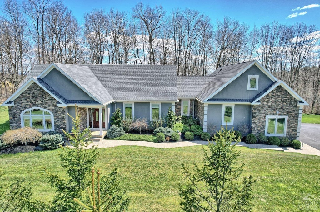 **PRICE REDUCTION** *** OPEN HOUSE APRIL 13TH 1-3PM ****A Luxurious Modern Home with Efficiency and Comfort! Immerse yourself in contemporary elegance in this stunning 3 bedroom, 2 bath home with 3 bonus rooms on the second floor that are perfect for a home office, gym, or additional bedrooms. The exterior boasts a sophisticated blend of stucco & stone siding, while triple-pane Pella windows provide energy efficiency and an abundance of natural light. Step inside to a haven of warmth and comfort featuring radiant heat flooring throughout the home that extends into the spacious 3-car garage. The gourmet kitchen features stunning quartz countertops and cherry cabinetry complete with a built-in microwave/convection oven, induction stove-top with a dedicated faucet, and appliances from Jenn-Air and Samsung. Unwind in the sun room bathed in natural light and enjoy seamless access to the expansive 20 x 25 timber tech deck perfect for entertaining. Surround yourself with music with strategically placed speakers throughout the home, extending to the outdoor deck and the 2 car garage. Peace of mind comes with a security system and a computer system that allows you to remotely manage your entire house from your phone. Embrace energy independence with 52 fully-owned solar panels and a 22kW standby generator with a 500-gallon underground tank. The radiant heated sidewalks are a warm welcome year-round. Additional highlights include: hardwood and tile flooring, an oil tank with casing, a chiller heating system utilizing solar/electric with an oil boiler backup, a 2-car garage with a loft for extra storage, and a 12 x 28 shed. This exceptional property offers the perfect blend of modern luxury, energy efficiency, and ultimate comfort. It's a fantastic home in a beautiful setting! View our 3D virtual tours of the home and property.