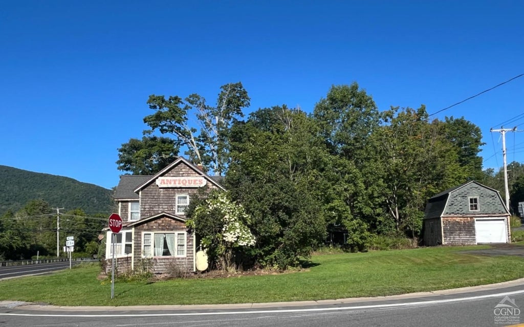 Surrounded by lilacs and hydrangea trees, this sweet three bedroom, one bathroom house has tremendous potential. Located on a rounded corner lot in the Village of Hunter Gateway District, Owner used this for many years as an antique store instead of a house. Lovely mountain views and windows on all four sides. Enclosed front porch and back patio with trelis railing. Large living room, dining room and kitchen that flow into each other with that beautiful vintage charm. Convenient to all that the village has to offer - post office, movie theater, eateries, bar, restaurants, music, plays, antique shops. Minutes to Hunter Mountain Ski Area or Windham Ski Area. Dutch Barn on property with garage door. Gateway District has flexibility on a retail/living possibility. Ask us for details.
