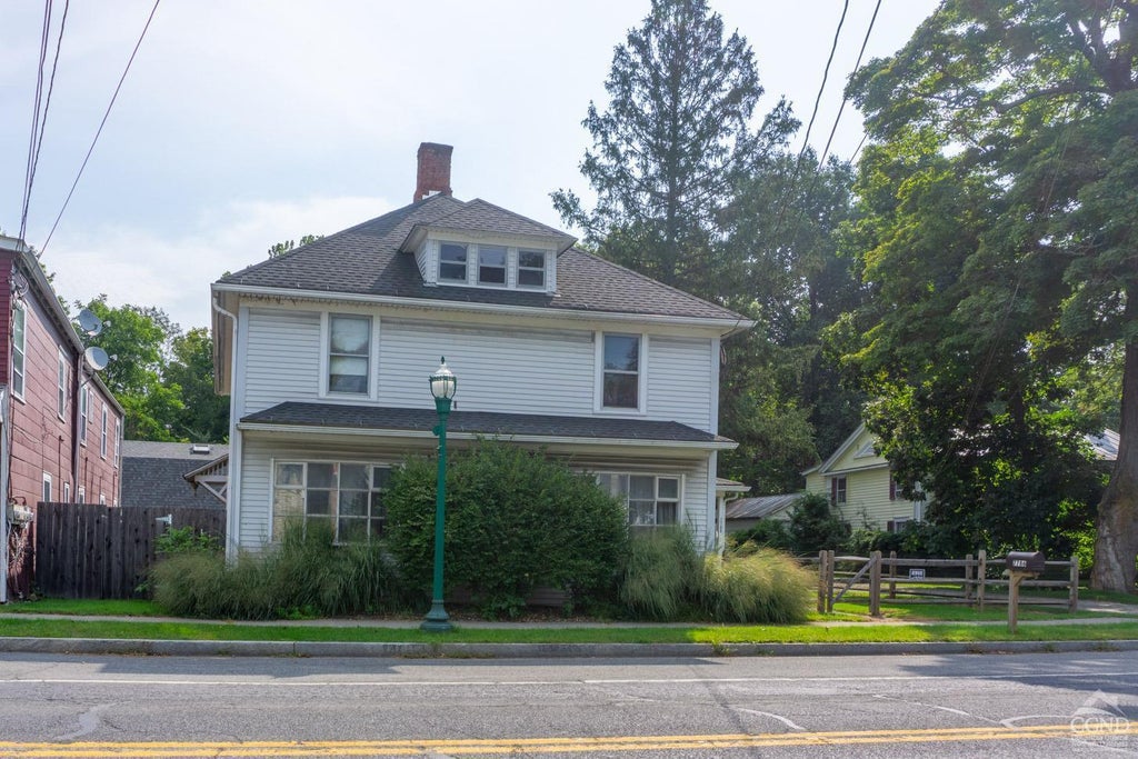 You wanted charm? You got it! This vintage 1903 village home in Pine Plains, NY formerly served as both the town pharmacy and library, and many of the bookshelves and all the quaint apothecary drawers remain intact. The large 3000sq foot home on a nicely landscaped yard of nearly a half an acre is filled with period details: wooden moldings, original door knobs and intricate iron hardware, a beautifully carved mantelpiece, and several built-ins. And, protected by carpeting for decades, there are beautiful wood floors throughout. Entered from either of two shady covered porches, the first floor has a living room (the former pharmacy), library, dining room, laundry room, powder room and an eat-in kitchen with a spacious mudroom attached. Upstairs there are four bedrooms, a study, and a full bath with a spacious walk-in closet. There's a walk-up attic that can be used for storage or finished off as additional living space. In the basement is a quite new furnace and a brand-new oil tank. While the house is in move-in condition, a bit of thoughtful updating of kitchen and baths will make the home really shine. Outside, the entirely fenced-in yard has gardens, a wide-open lawn perfect for entertaining and games, and a spacious barn that serves as a garage and workshop and has a large second floor that could become as an artist's studio or creative workspace. Steps away from popular local restaurants and the Stissing Center for the Arts, this property is right in the heart of this up-and-coming town. Less than two hours from Manhattan and close to hiking, biking, farmers' markets and antique centers, Pine Plains is an easy drive to the nearby towns of Millbrook, Rhinebeck, Millerton and Hudson. Come and see this place and make it your own!