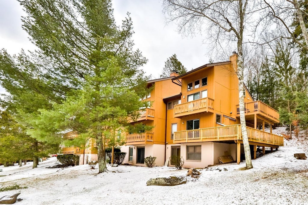 Rustic two bedroom, two bath end unit with extended deck.Custom kitchen cabinets, quartz countertop, living room with wood burning fireplace, hardwood floors, Anderson sliding doors and windows. Utility room with full size washer and dryer. Walk to ski trails from this two level, beautifully updated ski home. A great place to come and relax or rent for additional income.