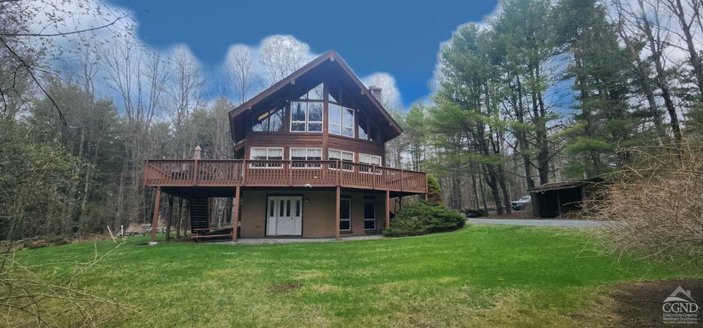 Charming 2 family Chalet Between Windham & Hunter Ski Areas - Perfect for Family Living or Rental IncomeNestled on a peaceful cul-de-sac in a serene country setting, this beautifully maintained chalet-style home offers the ideal blend of mountain charm and modern comfort. Conveniently located between the Windham and Hunter ski resorts, this spacious 6-bedroom,4-bath, 2 kitchen home spans approximately 3,700 sq ft and is perfect for year-round living, vacationing, or generating rental income.The upper level features 4 bedrooms and an inviting open floor plan with abundant natural light from large slider windows that seamlessly connect the indoors with the beauty of the outdoors. A beautiful kitchen with SS appliances and Quartz countertop and even a pantry for extra storage. Sliders to access the large wrap around deck for easy entertaining. A cozy wood-burning stove adds warmth and charm, with piping in place for a second stove downstairs.The primary bedroom has vaulted ceilings and large windows with pretty country views. Downstairs, above grade walkout apt can be locked off or accessed through upper level depending on use and privacy.The lower level includes a separate, beautiful 2-bedroom apartment ideal for guests, extended family, or rental opportunities.Located in a vibrant 4-season community with access to golf courses, scenic lakes and waterfalls, hiking trails, and local breweries all just a short drive away. Whether you're hitting the slopes, exploring nature, or simply relaxing, this chalet offers the perfect retreat in the heart of the Catskills. Meticulously maintained and bordered by stone walls and a circular driveway. A beautiful, peaceful setting.