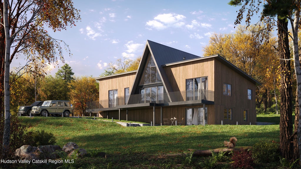 Welcome to the ultimate upstate escape—where sleek modern design meets breathtaking mountain views. This to-be-built stunner sits on 5 private acres in the heart of the Catskills, offering 3,334 sq ft of thoughtfully designed space with 3 bedrooms, 3 baths, plus a flex room to make your own. Step inside and be wowed by floor-to-ceiling windows flooding the open-concept living space with natural light and uninterrupted views. The gourmet kitchen is a showstopper, featuring custom cabinetry, a striking 12-foot waterfall island, and top-of-the-line appliances—perfect for hosting or just indulging in your morning coffee. The living and dining area exudes warmth with 25-foot vaulted ceilings, exposed beams, and a sleek fireplace, setting the scene for après-ski lounging or cozy nights in. The primary suite is a true retreat, complete with a spa-like ensuite, radiant heated floors, and a spacious walk-in closet. Two additional bedrooms on the opposite wing give guests their own space, while the fully finished walk-out lower level is ready for whatever you dream up—a home theater, game room, gym, or extra bedroom. And the best part? This home was designed for ultimate relaxation. Take in the panoramic views from your massive deck, then unwind in your private hot tub and sauna. With 7-inch-wide hardwood floors throughout and double and triple-glazed Pella windows framing the stunning Catskill landscape, this is luxury mountain living at its finest. If you're looking for the perfect mix of adventure and relaxation, Hunter and Windham, NY, are where it's at. Just about 2.5 hours from NYC, these charming Catskills towns are a dream for outdoor lovers—think epic skiing and snowboarding in the winter at Hunter and Windham Mountain, plus hiking, mountain biking, and waterfall chasing in the warmer months. The local scene is just as good, with cozy spots like Scribner's Lodge for après-ski vibes, The Windham Local for great coffee and bites, and West Kill Brewing for craft beers with a view. Whether you're after a weekend escape or a full-time mountain retreat, don't just visit the Catskills- live the dream!