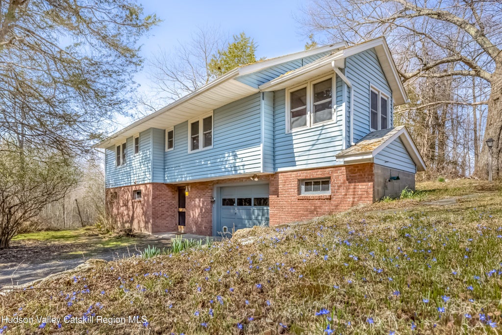 Total privacy awaits on this four-acre retreat, where meadows, mature trees and direct Mohonk views create a peaceful and inspiring setting. A true paradise for gardeners and nature lovers, the property features two fenced-in gardens, perfect for cultivating a farm-to-table harvest, while native and ornamental plantings enhance the landscape's natural beauty. Inside, the dining room area serves as a gathering point, with exposed brick walls and handcrafted built-ins. A wood burning stove, set within the original fireplace, creates an inviting atmosphere. A convenient main floor full bath and spare room enhance the home's functionality for both everyday living and weekend guests. Upstairs, you'll discover a generous living area with its own wood stove, while the primary suite offers a half bath and an adjoining sunroom with direct outdoor access. A wonderful spot for sipping morning coffee, getting lost in a good book, or simply soaking in the scenic views. Two additional bedrooms and a full bath complete this level, providing versatile space for family, guests or a home office. Sustainable features that include solar panels, heat pumps and a backup generator, provide peace of mind. Located just minutes from Mohonk Preserve and the hamlets of High Falls, Rosendale and Stone Ridge, this special property connects you to nature while keeping you close to local amenities. Priced to sell.