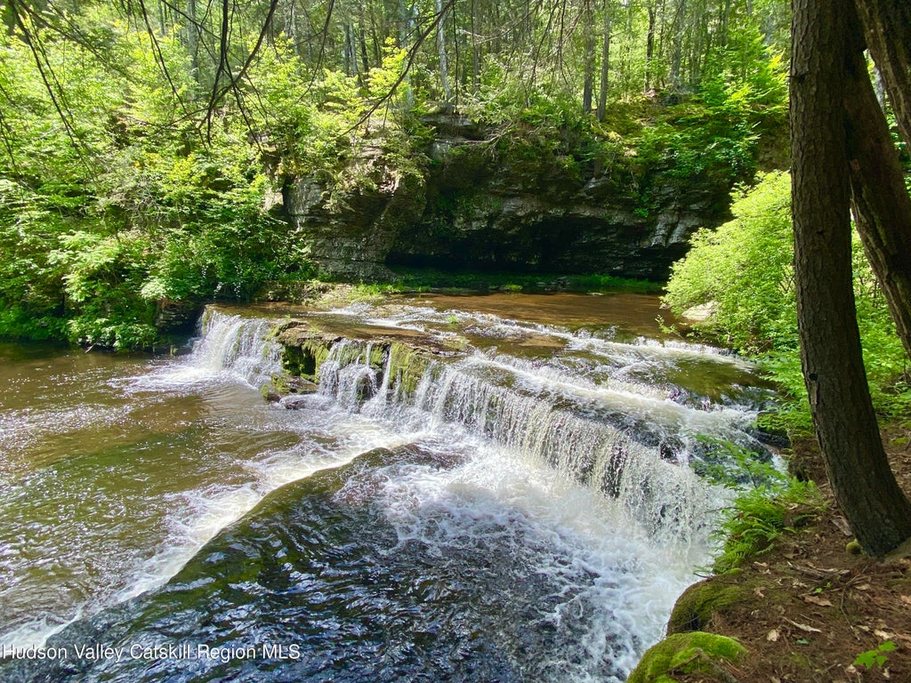 ONE OF THE MOST SPECTACULAR WATERFALLS IN ULSTER COUNTY is front and center on this extremely rare and unusual land offering. The visual beauty of the waterfall, stream, cliffs and land is unparalleled. Calming audio of the waterfall and rushing Mettacahonts stream is 24/7 and year-round. Pulling into the circular driveway you are greeted by a master stone worker's hand-built raised garden bed, showcasing gorgeous trees, flowering plants and shrubs. The two-story structure has an amazing office space on the second level featuring a large skylight and windows looking down onto the waterfall, cliffs and steam. The first floor can be utilized as a workroom, shed or potter's studio. A sweet old school summer sleeping quarters cottage circa 1930's is nestled in the woods and can be possibly turned into additional guest quarters / art studio. Paths to various points of interest on the land including a ladder allowing access to swim in the large pool of water at the base of the waterfall. Mossy glens are laced in and around the pines, hemlocks, and deciduous trees. A massive stone cliff is the backdrop behind the stream showcasing ferns, dogwood trees and various lush greenery. Dewitt is a very tranquil road with scant car traffic. Points of nearby interest: The Ashokan Reservoir is minutes away to enjoy the promenade. Access to all the wonderful destination places in the Accord/Kerhonkson area: Arrowood and Rough Cut Breweries, Ravenwood, West Wind Orchard, Mill and Main, The Flying Goose, and Inness Resort. Minnewaska State Park is only 15 minutes away... and Mohonk Preserve is just beyond it towards New Paltz. If you have ever dreamt of having your own personal waterfall... this property could be a dream come true with an opportunity to build your very own Falling Water 2. Note: Zillow states the property is in a flood plain rather incorrectly... the stream is at the base of a steep cliff and a home would be out of harms way if built at the upper elevation. 1000-gallon propane tank 1/2 full comes with the sale.