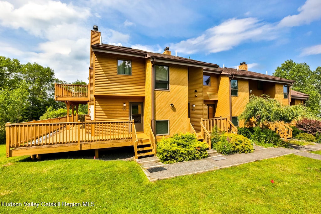 Welcome to Y2 Hunter Highlands, an exceptional condo situated closest to the slopes of Hunter Mountain. This beautifully appointed unit offers the ultimate convenience for ski enthusiasts with its coveted, one-of-a-kind ski-in/ski-out location! In the warmer months, the area transforms into a hub for outdoor adventure, offering hiking, mountain biking, and scenic chairlift rides. With this unit's prime location, you're just feet away from all the activities and that make Hunter a year-round destination. Inside, you'll find a warm and inviting living space featuring an open floor plan, perfect for relaxing after a day of outdoor fun. The unit is tastefully decorated with mountain charm, featuring a comfortable living area with a fireplace, a fully equipped kitchen, and a spacious dining area. Step out onto your private wrap around porch and take in the stunning unobstructed views of Hunter Mountain and the surrounding Catskill Mountains. Whether you're looking for a winter retreat, a summer escape, or an income-generating property, this condo offers the perfect blend of comfort, convenience, and outdoor adventure. Enjoy all the local amenities including restaurants, shops, and year-round activities just steps from your door. Don't miss this rare opportunity to own a true ski-in/ski-out condo at one of New York's premier mountain destinations.