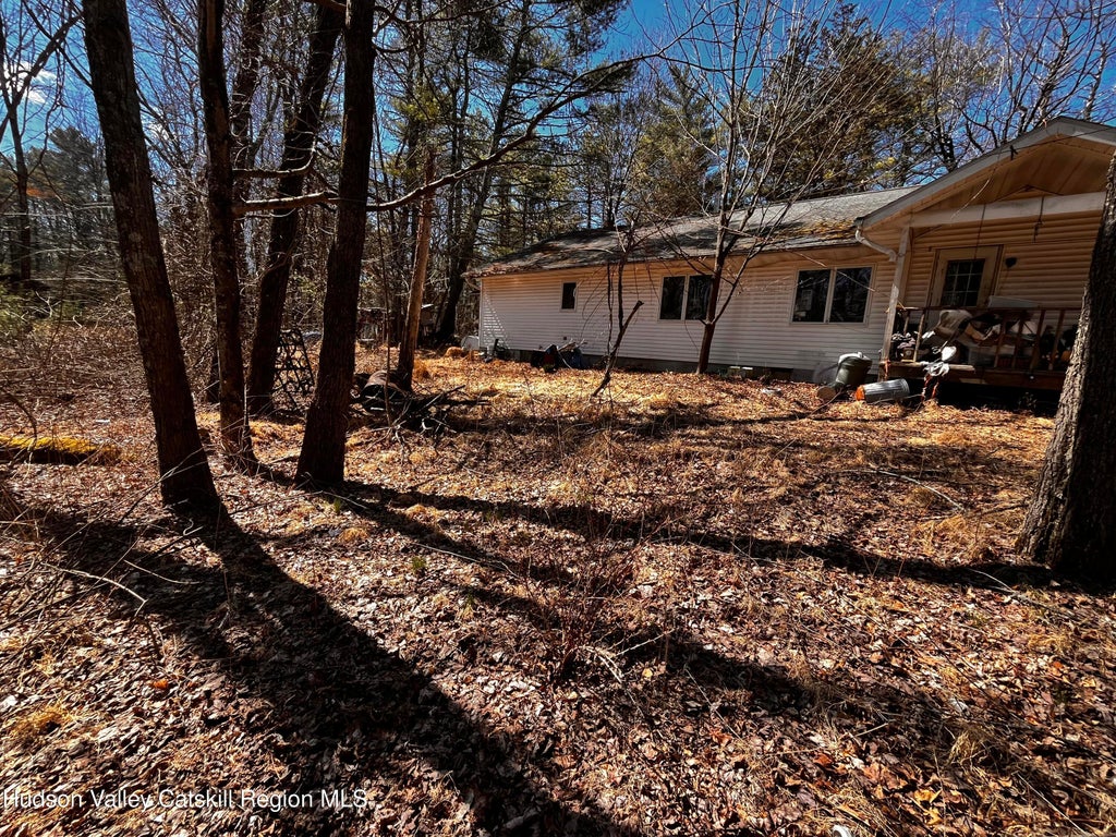Stone walls line the beautiful wooded lot, featuring rock outcroppings and glacial boulders. Walk through the woods to truly feel the magic of this land. The home, built in 1979, has electric, well, and septic system; however, the condition of all systems is unknown, as the house has been vacant for years. A driveway is already in place. The house is set back from Glasco Turnpike, with the garage situated further back. The lot is being sold as-is and significant clean up is required. The lot offers a serene and private atmosphere while remaining close to shopping and dining. The location is convenient: just an 8-minute drive to Woodstock town center, a 12-minute drive to Saugerties town center, and a 15-minute drive to shopping in Kingston. Opus 40, The Woodstock Day School, and Zena Recreation Park Swim and Tennis Club are all just minutes away.