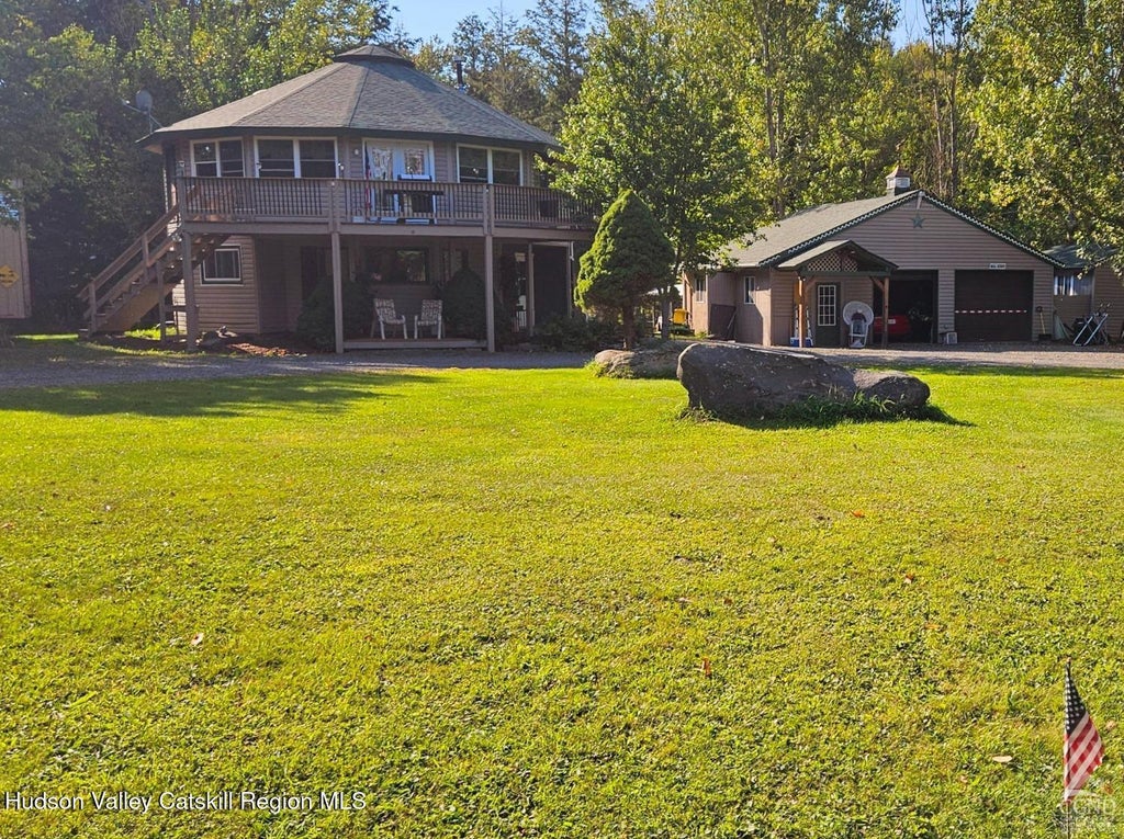 Nestled in the scenic beauty of Windham, NY, this unique octagon house offers a truly one-of-a-kind retreat close to skiing, golf, and hiking adventures. Set on over 5 acres of parklike surroundings, this property provides plenty of space for relaxation and exploration. The main home features 3 bedrooms and 2.5 baths, offering comfort and charm with stunning mountain views with surround windows to bring the outside in.The perfect country location with an animal farm just up the road to enhance the country stay. Adding even more appeal, on the premises is a cozy tiny house on wheels that can be purchased separately and/or relocated to any part of the land, a whimsical tree house perfect for outdoor adventures, and spacious garages and man cave/she shed for all your storage needs. Along with a fenced dog run/chicken coop..whatever you choose. Situated on a beautiful country road, this property combines tranquility with convenience, making it an excellent investment opportunity for Airbnb enthusiasts or anyone seeking a fun full time or weekend getaway for family and friends. With its unique character and incredible setting and just a little different from the rest, this home is perfect for those looking to escape to the country