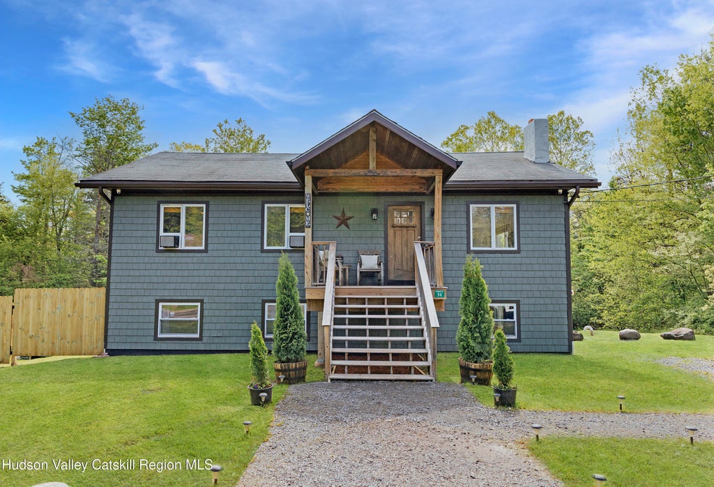 In the ever-charming mountain town of Tannersville, where Catskills cool meets small-town vibrancy, welcome to your ultimate upstate basecamp. This spacious six-bedroom, three-bath retreat offers serious short-term rental potential, with all the cozy, functional details that make for effortless upstate living. Just a block from Main Street, you're moments from some of the village's best spots, including The Pantry, Tabla, Moma's Boy Burger, Shandaken Bake, Lucky Catksills, and the beloved Maggie's Krooked Café & Juice Bar. Only 5 minutes to Hunter Mountain, with easy access to Windham, Phoenicia, Catskill, Hudson, and Woodstock, the location is ideal for four-season adventure and year-round enjoyment. Yet for all its convenience, the home feels worlds away. Sawmill Creek meanders through the backyard, creating a peaceful backdrop for lounging by the creek, playing lawn games, hosting BBQs, or gathering around a fire pit under the stars. Surrounded by trees and fresh mountain air, this home strikes the perfect balance between proximity and privacy. Inside, the layout is made for entertaining and easy living, with an open floor plan, large windows, and abundant natural light across two full levels. The main floor features a welcoming wood-burning stove, an open kitchen and dining area with access to the back deck, plus three bedrooms and a full bath. The walkout lower level adds flexibility with its own living space, a second wood-burning fireplace, three additional bedrooms, an office and two full baths. Ideal for hosting guests, accommodating extended family, or configuring as a separate rental suite. Whether you're looking for a full-time residence, weekend escape, or investment opportunity just over two hours from NYC, this Tannersville haven truly checks all the boxes.