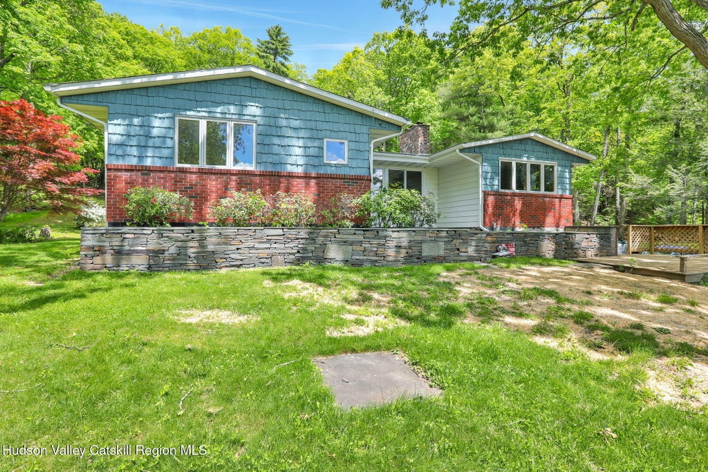 Set back from the road and nestled on 1.40 acres atop a gentle hill, sits a sprawling ranch , surrounded by woods and nature. This lovely three-bedroom, two-bath home has been thoughtfully maintained over the years, offering peace, privacy, and a true sense of seclusion. The open floor plan features hardwood floors and large windows throughout, filling the home with natural sunlight and warmth. All bedrooms are generously sized offering ample closet space. The spacious eat-in kitchen boasts abundant cabinet storage and stainless steel appliances, overlooking the inviting living room anchored by a cozy fireplace—the perfect gathering spot for family and friends. Adjacent to the kitchen is a dining area that's perfect for hosting meals, along with a spacious den that can be used as an office, playroom or reading room. With everything located on one level, this home offers the ease and convenience of first-floor living. Step outside to the screened-in porch where you can relax and soak in the beauty of summer in comfort. The full, unfinished basement offers additional storage space and includes washer and dryer access, while also serving as a one-car garage. Whether you're unwinding on the front patio overlooking the nicely manicured yard with mountain views or entertaining guests on the front deck, this home is sure to impress. Conveniently located minutes from the Ashokan Reservoir, hiking/biking trails, Woodstock's restaurants, local shops, Kingston and so much more —come take a look and make this peaceful retreat your own! Please see attached docs for county records and floor plans.