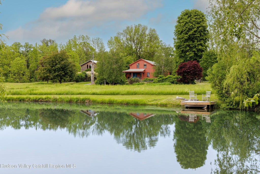 Eleven acres, 1820s farmhouse, purpose-built artist's studio, early 19th Century barn, big and deep 60 x 20 pool. All privately set far back from the road. That's the essence of this picturesque retreat ten minutes from Hudson (12 from Amtrak). The land is richly bio-diverse, including spring-fed pond, perennial gardens, mature trees, wild berries, fruit trees. Step inside the bigger-than-it-looks 2100 sq. ft house: Wide board floors throughout, wood-burning fireplace, many windows allowing good light in all weathers. First floor includes mud/laundry room, 3/4 bath, large kitchen with sitting room/fireplace, dining room, front hall and parlor. Upstairs are 4 Bedrooms and a full bath - one large BR, one medium BR, and two snuggeries. The 1300 sq. ft. 2-story studio has heat and water; the ancient barn is lovingly preserved and includes a 20 x 12 office. Ideal as it is, plenty of room to grow. Distant Catskill Mountatins are always on view - glorious sunsets guaranteed.