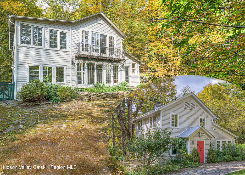 Nestled on 13 private acres of lush landscapes, meandering trails and impressive stone walls, you will find two very special vintage homes, outdoor sauna and shower plus small artist studio. Built in 1850 this two bedroom cottage combines historical character with contemporary amenities, featuring gleaming wood and wide board floors, beamed ceilings, stone fireplace, central air and a gourmet kitchen with oversize Sub Zero refrigerator and custom Bertazzoni gas range. The additional home built in 1925 offers a light filled space with first floor primary suite, renovated kitchen which opens to a large deck perfect for entertaining plus spacious great room. The second floor features a guest suite with vaulted ceiling, skylights and sliding doors to the balcony overlooking the sweeping vistas and gardens. This magical property is located just two miles to the Taconic Parkway, ninety minutes to NYC and 15 minutes to the charming Village of Rhinebeck. For nature lovers, Wilcox Park is right out your door with over six hundred acres of hiking trails and lakes for boating. and swimming. This exceptional property offers a unique blend of past and present, perfect for someone seeking privacy and tranquility. Also available with 57 acres, see listing # 20250657. Do Not use GPS, follow directions on the listing
