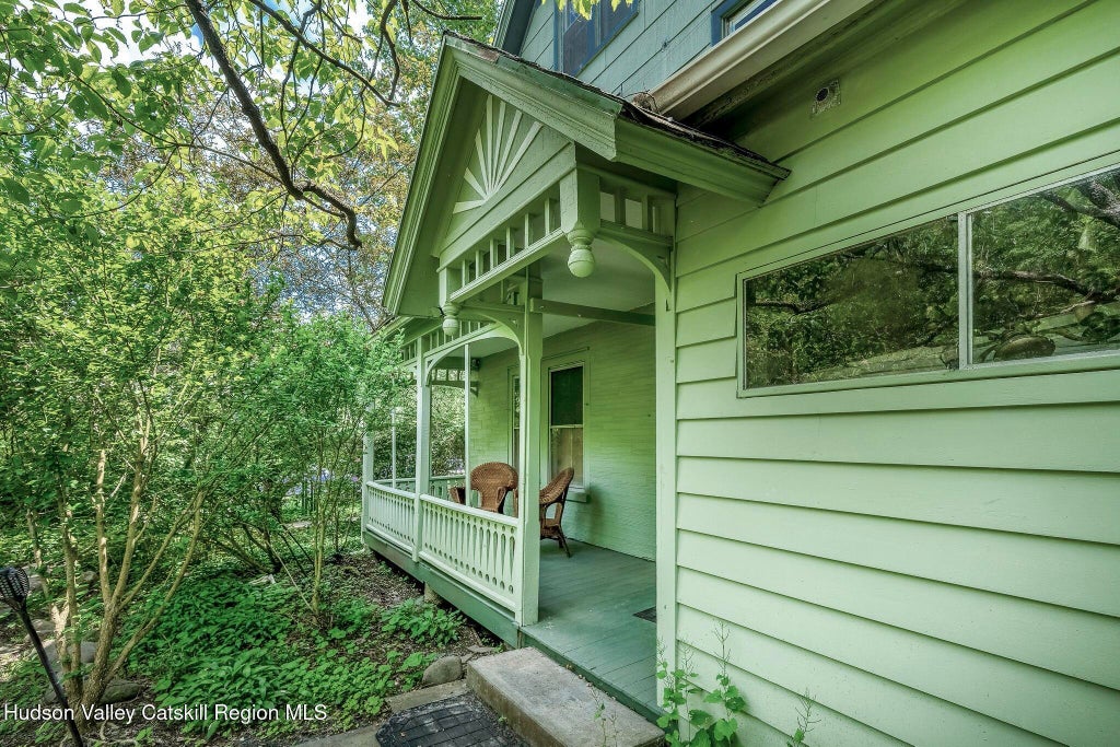WHIMSICAL WOODSTOCK ARTS AND CRAFTS - Live in a home steeped in history while making your own. Welcome to ''Quixote'', built in 1905 by Woodstock builder and former Artificer in the Civil War, John ''Barney'' Hoyt. Vintage character blends seamlessly with modern convenience. Original details of this 3 bedroom gem include wide plank floor boards, pressed tin ceilings, custom built-ins and a rocking chair front porch. Subsequent artistic owners have added hand-painted murals and accents, which have been kept, making Quixote the quintessential Woodstock home. The property has a lovely elegance, colorful funk, and an undeniable great vibe. Meanwhile, many recent improvements—roof, heating system, drainage system, generator—bring the home's function into the 21st Century. Every room (except the kitchen) on all 3 levels has been fully renovated to a high standard, including new or refreshed flooring and new interior paint. The living room/parlor off the eat-in country kitchen has a high pressed tin ceiling and is bathed in natural light by South and East-facing window sets. Upstairs, three restored bedrooms each showcase their own rich color palette. The 3rd floor finished attic space adds 460 square feet configured as a 2 room suite with its own half bath. Outside, lush, 100-plus year old gardens wrap the home with climbing roses, peonies, poppies, wisteria, lilacs, honeysuckle and more, ensuring something is always in bloom throughout the growing season. Sculptures are thoughtfully placed throughout. Enjoy all this in a IDEAL location. On the NYC bus route one mile from the Bearsville Post Office, gourmet Cub Market, restaurants and Bearsville Theater; 3 miles from the shops, galleries, restaurants and music venues of the one-and-only Woodstock, NY. The greater Hudson River Valley/Catskill Mountain region has all one could hope for all in one place—world class natural beauty, outdoor recreational resources, arts, culture and cuisine. It's why we live here. Now you can, too!