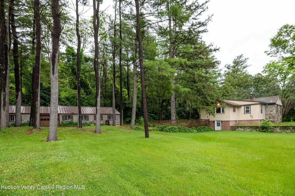 Tucked away along the serene banks of the Hudson River, this beautifully maintained three-bedroom home offers a rare blend of rustic charm and tranquil living. Centered around a stunning, oversized stone fireplace, the heart of the home radiates warmth and comfort, perfectly complemented by rich wood tones and exposed timber beams. Outdoors, the property feels like your own private nature preserve. A handmade stone pond, fed by crystal-clear spring water, invites peaceful moments and wildlife sightings, while manicured trees frame the landscape with natural elegance. This home offers a deep connection to nature.A massive detached garage provides ample space for vehicles, a workshop, or storage, offering flexibility for both hobbyists and homeowners alike. This unique retreat is more than a house—it's an experience. Come see the harmony of nature and craftsmanship that makes this Hudson River gem truly one-of-a-kind.
