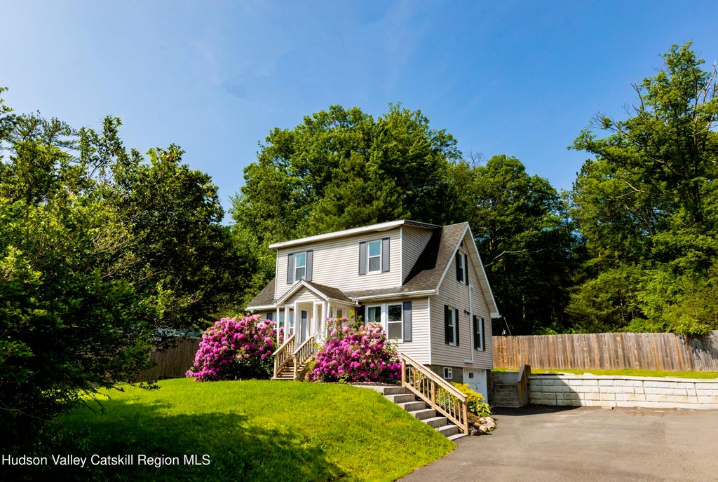 Set in the foothills of the Shawangunk Mountains, The Villa at Happy Minnewaska is a charming and well-appointed Cape offering more room to stretch out, with 3 bedrooms, an updated kitchen, and just the right mix of warmth, space, and style for your upstate retreat. Whether you're looking to host friends and family, rent as a getaway, or settle in full time, this turnkey home is ready for its next chapter. It has also been a successful short-term rental, with the potential to significantly offset carrying expenses should you choose to continue that use. Inside, the main level features a sun-filled living area, a full bedroom and bath, and a newly renovated kitchen that's the heart of the home. Outfitted with deep navy cabinetry, modern brass accents, solid-surface counters, and updated appliances, it's both beautiful and functional; equally suited to slow mornings or festive gatherings. Upstairs, you'll find two additional bedrooms with soft natural light and extra space to work, play, or sleep in. Outside, the backyard is a ready-made escape: a pool for hot summer days, a hot tub tucked under a covered gazebo, a patio for outdoor dining, and a firepit for long evenings under the stars. The nearly 2-acre property is shared with a neighboring home, but each has its own fenced yard, driveway, and full sense of privacy and a thoughtful setup that feels peaceful but not isolated. Located just minutes from Minnewaska State Park and Mohonk Preserve, and close to Arrowood Brewery, Inness, Westwind Orchard, Kelder's Farm, and a growing collection of restaurants and markets in Kerhonkson and nearby towns like Accord, Stone Ridge, and New Paltz. You'll find hiking trails, waterfalls, local farms, and hidden swimming holes all within easy reach. Homes this size, in this condition, and in this location are getting harder to find...especially with move-in-ready interiors, stylish updates, and outdoor amenities already in place. Whether for a weekend retreat or full-time living, The Villa offers space, comfort, and a sense of place that's hard to replicate. Don't wait; opportunities like this don't come around often.
