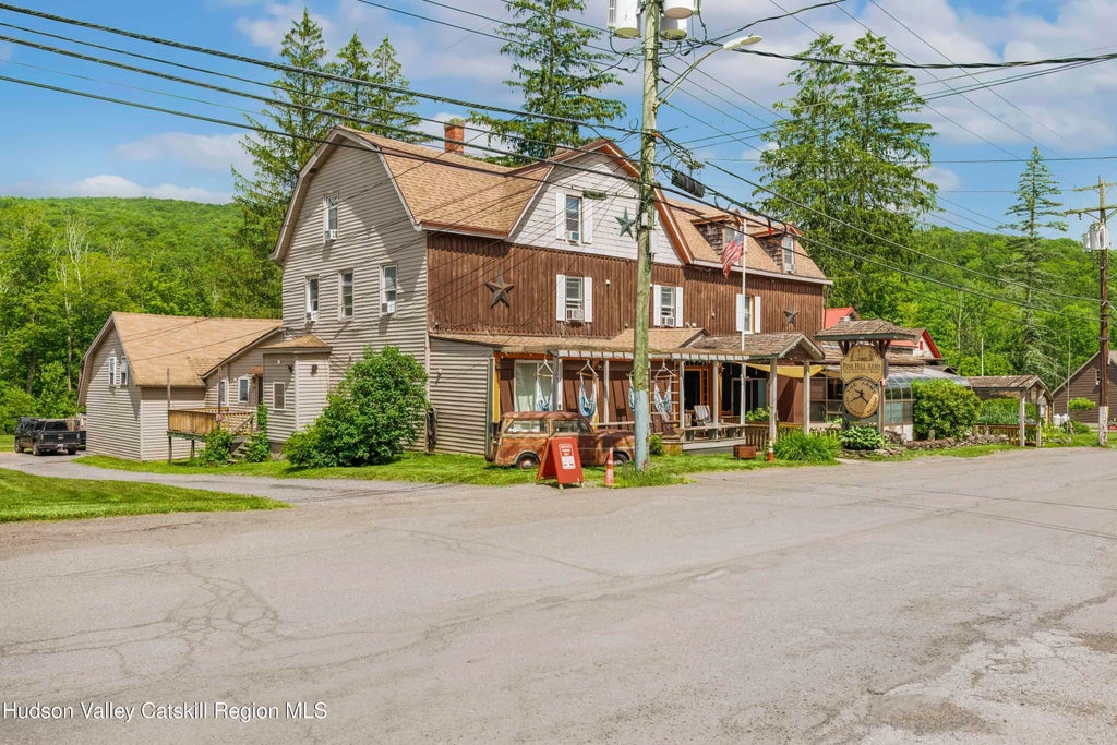 The Pine Hill Arms - a Catskills classic, ready for revival! Built in 1882 and set on nearly 2 acres in the heart of Pine Hill, this historic 15-bedroom inn with full-service restaurant, bar, and café offers a rare opportunity to reimagine a beloved Catskills institution. With a total interior square footage of over 10,000 sq ft, the property features a spacious lobby, commercial kitchen, offices, games room, and flexible gathering and event spaces. Also included are a rear outdoor terrace, a two-car garage, a separate two-bedroom apartment with its own entrance, and a three-bedroom carriage house. The property is connected to municipal water and sewer, has a liquor license, and has space for off-street parking for approximately 30 vehicles. Zoning supports a wide range of commercial and hospitality uses. The gardens to the rear of the property border Birch Creek, offering a picturesque natural backdrop and ample outdoor space for hosting weddings and seasonal events—making it an especially appealing venue for event-based hospitality. While significant renovation or redevelopment is needed, the potential is extraordinary. Imagine transforming the restaurant and bar into a sought-after après-ski gathering place for Belleayre Mountain visitors, or a cozy cultural hub for locals, weekend visitors from the city, hikers, and rail trail explorers. With thoughtful design, this historic space could once again become a true community anchor—serving locally inspired cuisine, craft cocktails and beer, along with warm Catskills hospitality. Located directly on Main Street with walkable access to the new rail trail linking the village directly to Belleayre Beach and Highmount, the Pine Hill Arms is ideally positioned to contribute to the village's revitalization. A number of commercial developments are already underway or in the planning stages—including a new food market, four retail storefronts, and expanded municipal parking—adding to Pine Hill's growing appeal as a year-round destination for tourism, recreation, and culture. Belleayre Mountain, just minutes away, continues to benefit from major state investment—including a high-speed gondola, expanded snowmaking, and new base lodge facilities. Its long ski season and growing calendar of four-season events draw visitors throughout the year. As an added benefit, the property may well qualify for historic tax credits, state incentives, or local grant programs aimed at encouraging the restoration and adaptive reuse of heritage buildings—offering potential financial support for visionary redevelopment. This is a compelling opportunity for a creative investor or hospitality operator to help lead the next chapter in Pine Hill's story.