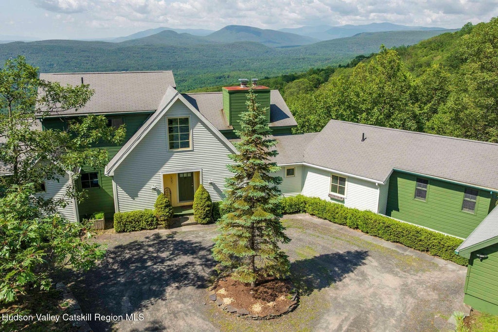 Architect-Designed Modern Retreat with Unparalleled Views Over Woodstock Perched high above the town of Woodstock, this rare and exceptional home offers a front-row seat to breathtaking panoramic views that stretch from the mountains to the Ashokan Reservoir. Designed by noted architect Les Walker, this contemporary residence evokes the magic of living in a luxurious treehouse—where every room is immersed in natural light and dramatic scenery. Wake to stunning sunrises and unwind to radiant sunsets from the comfort of your open floor plan living space, where a soaring floor-to-ceiling bluestone fireplace anchors the heart of the home. Expansive windows line the entire south facing rear of the house, bringing the outdoors in and framing unforgettable vistas year-round. Enjoy seamless indoor-outdoor living with two spacious decks—one screened for breezy summer nights, and one open for sun-soaked afternoons. The chef's kitchen flows effortlessly into the main living area, ideal for entertaining or quiet evenings by the fire. The main floor primary ensuite features a walk-in closet, built-in shelving, and serene views, while two flexible-use rooms offer space for a home office, media room, or guest quarters. Smart thermostats add modern comfort. Step outside to your private bluestone patio with a heated saline inground pool, outdoor kitchen, and firepit—your personal oasis nestled in the Catskills. A finished studio space above the 440 sq. ft. garage offers even more options for creativity or guests. Additional features include solar panels with battery pack, a circular drive for easy access, and meticulous attention to detail throughout. A truly rare offering—private, peaceful, and just minutes to the vibrant arts, dining, and community of Woodstock. A 3D Walkthrough Tour is available in the digital Lookbook or by request from the listing agent.