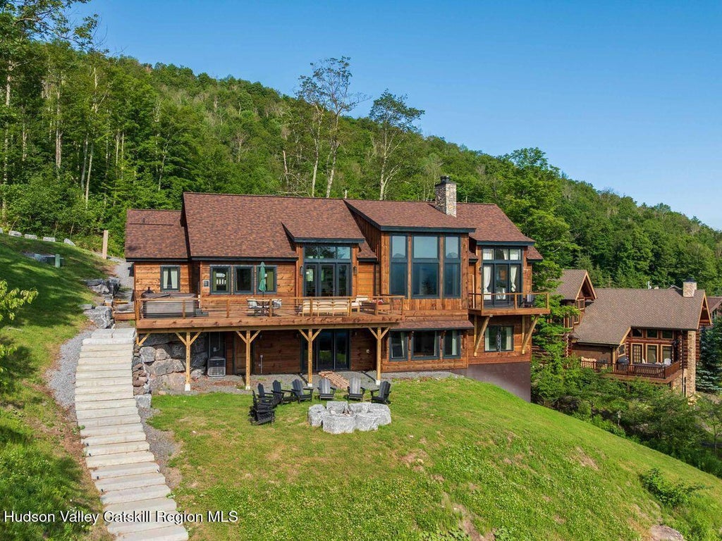 Welcome to the ultimate ski-in/ski-out escape at Windham Mountain Club, where modern design, four-season mountain living, and front-row slope access come together in a way that feels both luxurious and totally effortless. This brand-new, custom-built home is perched just steps from the chairlift, making it one of the most desirable on-mountain properties available at WMC today. Designed to bring the outdoors in, the home features dramatic two-story walls of glass that frame breathtaking views of the slopes, the valley, and Windham's ever-changing landscape. Whether you're watching the snow fall while curled up by the fire, admiring peak foliage in the fall, or enjoying long summer evenings on the deck, the views here are unmatched and the natural beauty of the Catskills becomes part of your daily life. Inside, the home's open floor plan flows seamlessly through stunning indoor and outdoor spaces. High ceilings, sleek modern finishes, warm hardwood floors, rustic open shelving, and striking stone fireplaces give this home a refined yet relaxed mountain vibe. Central air conditioning ensures total comfort in every season, while thoughtful architectural details add both function and beauty including multiple custom built-in benches and cubbies throughout for effortless organization and storage. The chef's kitchen is outfitted with commercial-grade Thor appliances, a six-burner gas stove with hood, white granite countertops, and an oversized breakfast bar that anchors the heart of the home. From the dining area, step out to the expansive deck with hot tub and modern cable railings and soak in the wide-open views. The first-floor primary suite is a true retreat, with a soaking tub, double vanities, tiled walk-in shower, and a custom walk-in closet. A perfectly positioned picture window brings the mountain right into the bedroom, and private access to the deck makes the space feel even more peaceful. The home features six bedrooms plus an additional bunk room and a dedicated office/den, five full bathrooms, and plenty of space for guests to spread out. A second ensuite above the garage offers total privacy for in-laws or guests. Downstairs, enjoy a spacious family room with fireplace, a game room with pool table, and a show-stopping custom bar/lounge. The wet bar is fully equipped with a refrigerator, a separate wine cooler, and a dishwasher and all appliances match the kitchen. There's also a gym/flex room, a ski/boot room that connects directly to the outdoors, and a full laundry room with sink, ample storage and workspace. Step outside and the mountain is right there, literally. A stone pathway leads from the ski room directly to the lift. Apres-ski doesn't get better than this: roasting marshmallows around the fire pit, sipping wine in the hot tub, and watching the last skiers cruise down the trail. Whether you're seeking a private mountain getaway or a high-performing investment property, this move-in-ready, air-conditioned home delivers. Located within Windham Mountain Club's expanding four-season resort, you're just minutes from golf, spa, dining, biking, hiking, and year-round events. The property offers ample parking, a 2-car attached garage, off-street parking, a generator, community water and sewer, underground electric, and high-speed fiber optic internet. This is not just a house, it's a lifestyle. A true ski-in/ski-out modern mountain retreat with the best views in the Catskills, fully equipped for every season and every memory you're ready to make. A 3D Walkthrough Tour is available in the digital Lookbook or by request from the listing agent.