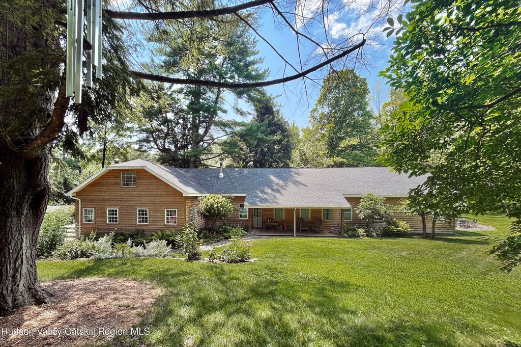 This enchanting property enveloped in a private picturesque setting is a true dream. Bluestone paths and walkways lined with gardens lead to an artistically designed country residence steeped in history. Casual elegance is the best description upon entering into the expansive sun drenched double height great room lined with windows. Beautiful wood floors throughout add to the crisp, clean design. The large kitchen with woodstove and gorgeous coffered ceiling is the perfect place for holiday gatherings or through the side door to a covered porch where you can enjoy your morning coffee while overlooking your gardens. The primary bedroom suite is its own private and peaceful sanctuary with vaulted ceilings, spa like bath and french doors leading to a private patio. A windowed hall leads to an exceptional sauna for further relaxation. Large laundry room with expansive built in closets. The baths in the house are beautifully designed and tiled. Two perfectly planned guest bedrooms. This absolutely private and secluded property is magic. Sparkling heated inground pool within a bluestone lined grotto. Masterfully designed perennial gardens with mature plantings. Extensive bluestone walkways, patios, walls and stairs throughout the property. Specimen trees. Two lovely ponds each with its own unique feature of a patio or firepit. Outbuilding. Lovely woodland to the rear of the property. Meandering and sweeping lawns. Moments to shops, restaurants, galleries, farm stands and orchards. A rare combination of privacy, comfort, beauty and serenity.