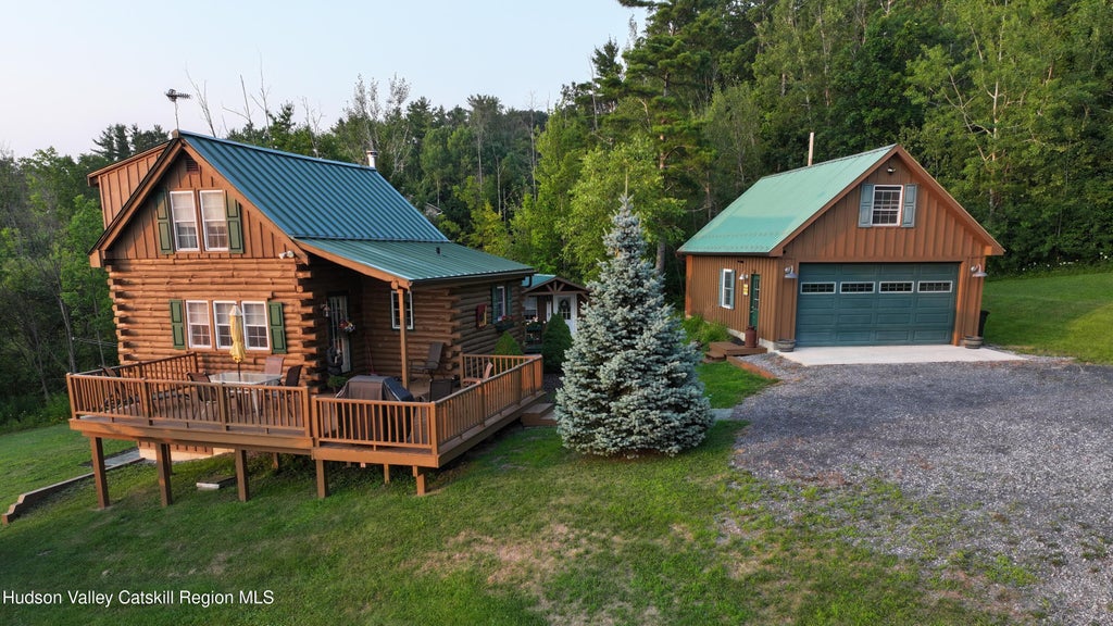 Nestled on 9 private acres with stunning mountain views, this charming 2-bedroom, 2-bath log home was completely rebuilt in 2009 and offers the perfect blend of rustic character and modern convenience. Surrounded by mature landscaping, the property features a spacious heated garage with attic storage, a 16x24 barn, a guest house, dog kennel, garden shed, wood shed, and raised bed garden—perfect for homesteading or hobby farming. A finished walk-out basement opens to a beautiful stamped concrete patio, ideal for outdoor entertaining or relaxing in nature. A whole-house Generac generator provides peace of mind in all seasons. The home backs up to over 500 acres of state land, offering unmatched access to hiking, hunting, and wildlife right from your backyard. Whether you're looking for a weekend retreat or a full-time residence, this property delivers space, privacy, and breathtaking scenery in every direction.
