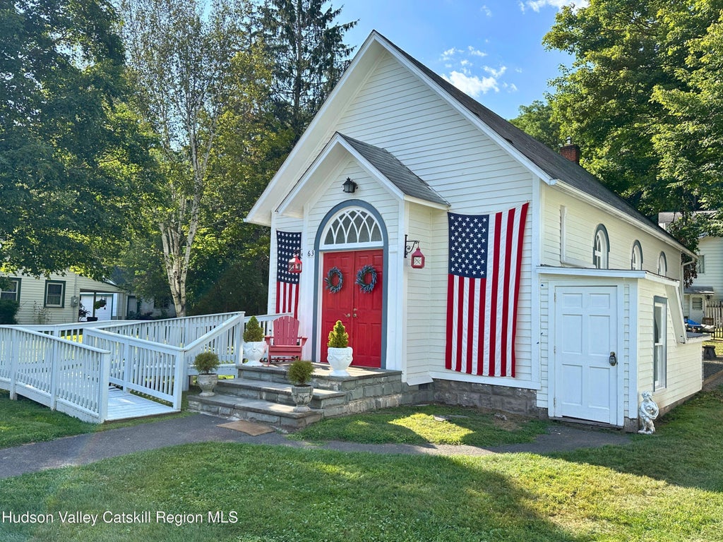 History meets modern comfort in this rare Catskills find. Built in 1931 as St. Margaret's Chapel, this thoughtfully updated loft-like residence blends small-scale charm with flexible, open-plan living. Soaring ceilings, tall English rolled-glass windows, and the dramatic double-door entry set the stage for a truly one-of-a-kind home or getaway. Inside, the main level flows from a sunlit open living/dining area to a versatile stage-like alcove ideal for a kitchen expansion, creative workspace, or art studio. Recent upgrades include a full bath, kitchenette, mini-split heating/cooling, and a private back patio for outdoor dining. A set of steps (or a future interior staircase) leads to the lower level, where the next owner could envision bedrooms, a media lounge, or workshop space - perfect for those who love a (manageable) project. The building's intimate scale and adaptable footprint will appeal to fans of historic architecture, small-house living, or anyone seeking something truly unique. Outside enjoy a manicured lawn with established landscaping, a new patio area, a fire-pit and the most inviting hammock! Two off-street parking spaces and a flat level yard perfect for entertaining. Located on a quiet village street, you're minutes to Margaretville's shops, cafes, and year-round Catskills recreation. Public water/sewer for low-maintenance living. If you've been searching for a property that inspires conversation the moment you open the door - this is it. Your (incredibly unique) Catskill Dream Awaits!