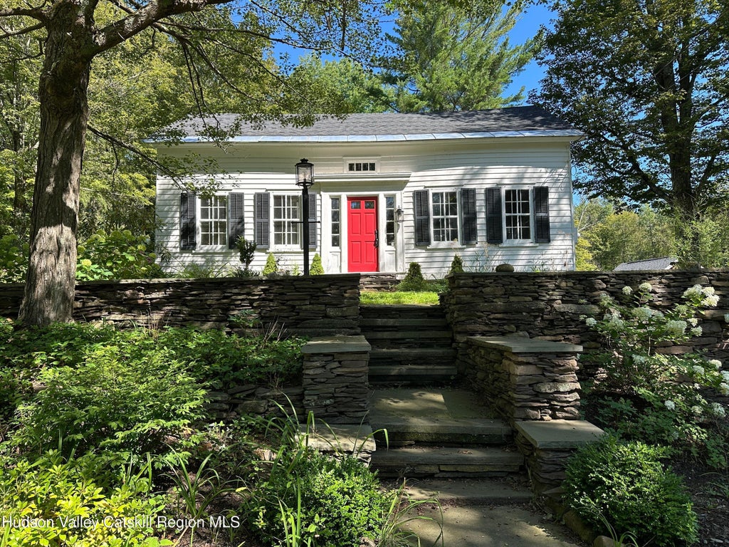 The Harper House · Circa 1794 The Harpersfield/Stamford residence of Colonel John Harper - the town's founding namesake - represents one of the Catskills' most significant historic offerings and stands as a living record of regional heritage. Architectural enthusiasts will appreciate the Federal-style rear (circa 1794) and Greek Revival front (circa 1845), reflecting two eras of masterful craftsmanship. The home is an exceptional blend of architecture, history, and landscape. Its most unique feature: rare wall murals by LaMont Warner, head draftsman and designer for American Arts & Crafts legend Gustav Stickley, which transform the entry into a living work of art and offer a glimpse into the decorative arts of the early 20th century. The property beautifully balances history and modern living. Wide-plank floors, hand-hewn beams, original woodwork, and multiple fireplaces anchor the interiors with timeless warmth, while the Wolf-equipped chef's kitchen with Mission-style cherry cabinetry, custom granite farm sink, cedar-lined pantry, and Vermont Soapstone stove forms the heart of the home. Five bedrooms - including a newly finished two-room suite - and two recently renovated spa-like bathrooms (one with a sauna) ensure comfort and privacy for family and guests. Modern updates such as spray-foam insulation, a CWC septic, and high-speed fiber internet provide ease behind the scenes. Outdoors, the craftsmanship continues in stone: a sweeping bluestone patio with outdoor fireplace, dramatic hand-stacked retaining walls, and stone-capped steps embody the Catskills tradition of building with the land itself. Mature maples and curated landscaping frame 116+ acres of meadows, trails, and woodlands, while NYS Forever Wild land across the road guarantees preservation of the views. Outbuildings include a sugar sap house, original outhouse, ice house, and woodworking studio. An extraordinary opportunity to own a piece of Catskills history, designed for modern living. This is not simply a home but a legacy estate - a place where art, architecture, and nature exist in perfect conversation.