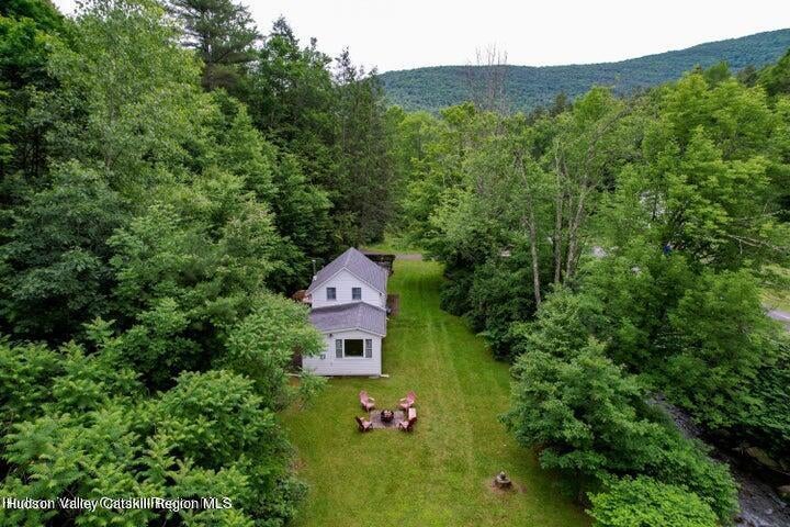 ADVENTURERS of both the outdoor and armchair variety, THE TRAIL HOUSE awaits you, an adorable vintage farmhouse with views, waterfront, and extra acreage that includes your own PRIVATE TRAILS that back thousands of acres of FOREVER WILD STATE LAND! This special getaway or primary home or investment opportunity sits in majestic Shandaken in the HEART OF THE CATSKILL PARK. You will be enchanted by this sweet natured home with nearly a few dozen extra acres, a GLAMPING, HIKING, ATVING and SNOWMOBILING paradise! And when you open up the windows and hear the running water, the craziness of the world melts away. This 1889 beauty remains character-drenched though smartly updated. There is an OPEN FLOOR PLAN that shows off the GOURMET KITCHEN which spills over to the dining area, generous living area, full bathroom, and an extra den with many possibilities. As you wander, you can't help notice the countless windows, GORGEOUS HARDWOOD FLOORS and the WOOD STOVE on its beautiful brick hearth framed by giant FLOOR -TO-CEILING WINDOWS. Upstairs you will find two bedrooms and a half bath but for those who would prefer a first floor bedroom, you will note a logical possible spot. Step outside to enjoy coffee on the ROCKING CHAIR PORCH or a barbecue on the deck off of the kitchen. Most of the furniture is also available making this a very turn-key, MOVE-IN READY home. When you feel like escaping the world, just head up to your own PRIVATE CAMPSITE where you can be one with nature yet be close enough to home to easily walk back for a shower! The property consists of 22.44 ACRES total but keep going if you like onto the state land - or walk down to the water, easily accessed from the yard. For those needing the option to WORK FROM HOME, high speed cable internet is readily available. Impossibly beautiful Shandaken is one of the most notable recreation spots in the Catskills, just minutes from TWO SKI MOUNTAINS, world class hiking trails, fly fishing in the mighty Esopus, swimming lakes, breweries, music venues, farm-to-table dining, and so much more. There's even a town park just up the road with a playground, doggie run, event pavilion, and more. It is also just five minutes from everyone's favorite small town PHOENICIA and an easy drive to WOODSTOCK and KINGSTON. The GWB is just over two hours away from the Trail House too. It's the perfectly situated Catskills home for both cozy relaxation and rugged exploration.