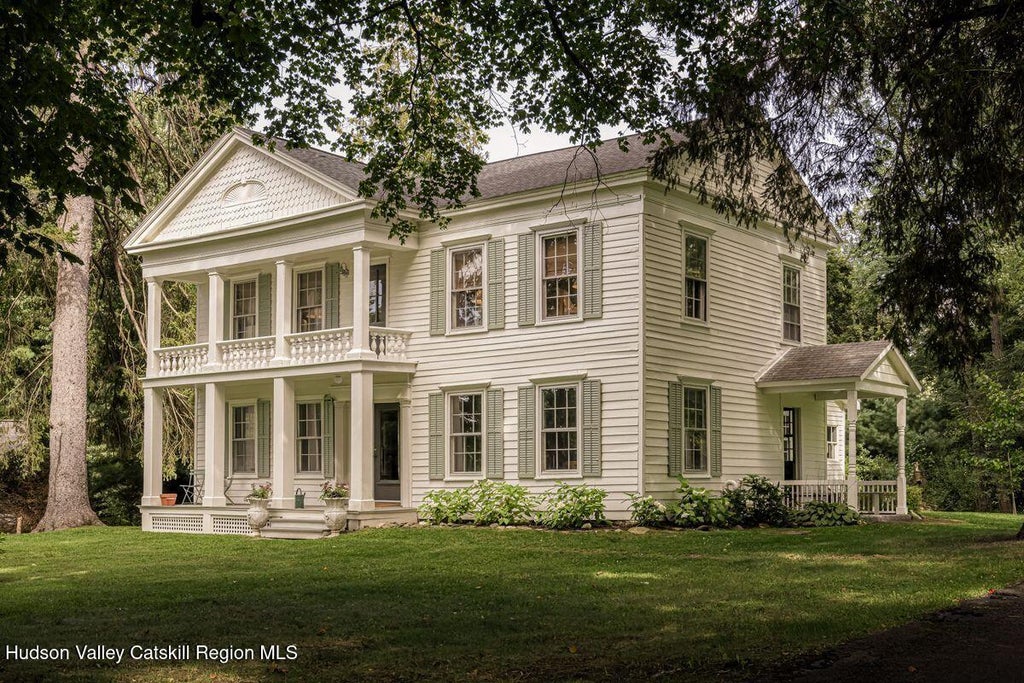 A fabulous example of early Hudson Valley architecture, this c1840 Greek Revival farmhouse sits on three rolling green acres of meadow and gardens. Old growth maples dot the landscape, the property is just 5m from the vibrant city of Hudson but a world away. Its stacked covered porches are framed by classic columns, and gorgeous six-over-six windows are lined with the home's original shutters. Inside you'll find wonderfully high ceilings and wideboard plank floors, four bedrooms and three full baths. So many fabulous original details have been preserved, and so much charm added over the home's long life. The kitchen is large and gracious, with a gas stove and fireplace. The living room has a fabulous onyx mantle and walks out to a private back yard. You'll find a pergola draped with wisteria and a garden shed/studio perfect for projects or creative endeavors. Upstairs, four large bedrooms are all fabulously stylish, light filled and spacious. 24 Van Wyck is architecturally stunning & ideally located, minutes outside of Hudson, just 8m to Amtrak and 2h north of NYC.