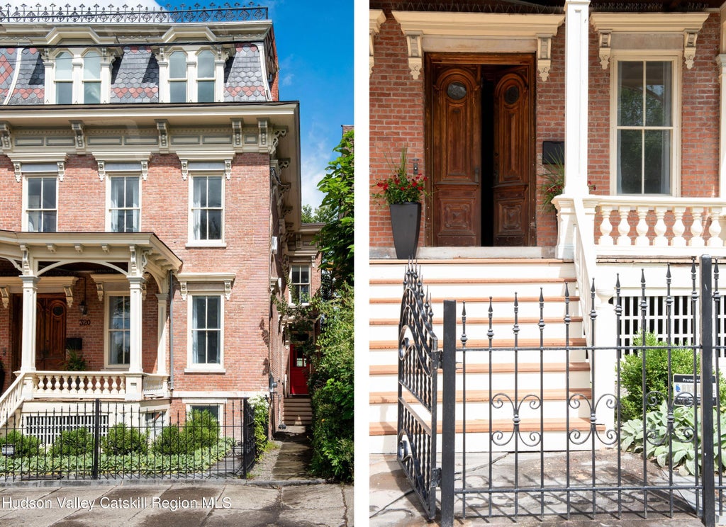 Historic Circa 1870 Italianate Brick Brownstone Step into history with this stately brick Brownstone, majestically positioned on one of Hudson's most prestigious tree-lined blocks. The historic home, built circa 1870, was formerly the residence of Joshua T Waterman, the four-term Mayor of Hudson in the 1850's, and exemplifies the grandeur of Italianate-era architecture while offering modern luxury throughout its thoughtfully restored interiors. This distinguished residence welcomes you with a grand front porch, perfect for enjoying views of the neighborhood's other magnificent homes. Inside, discover large rooms with soaring ceilings, exposed brick and beams, and exquisite period molding that showcase the home's architectural heritage. The seamless flow from room to room creates an ideal environment for both intimate living and elegant entertaining, while abundant natural light pours through oversized windows. The heart of the home features a chef's kitchen equipped with professional-grade amenities including a 48'' DCS stove and Sub-Zero refrigerator, complemented by a large kitchen island perfect for culinary adventures and casual dining. Five bedrooms are thoughtfully arranged across the home's three floors, with two generous bedrooms on the second floor and three additional rooms offering flexibility for a home office, den, or guest quarters. The residence is completed by 2 half and 2 full beautifully appointed bathrooms. The outdoor spaces are equally impressive, featuring a stylish landscaped and fenced yard with bluestone dining and lounging areas - an ideal setting for al fresco entertaining or quiet relaxation. Located just blocks from the vibrant Warren Street shopping and dining district and convenient Amtrak service, this remarkable home offers the perfect blend of historic charm, modern living, and the Hudson Valley lifestyle. A rare opportunity to own a piece of Hudson's architectural legacy.