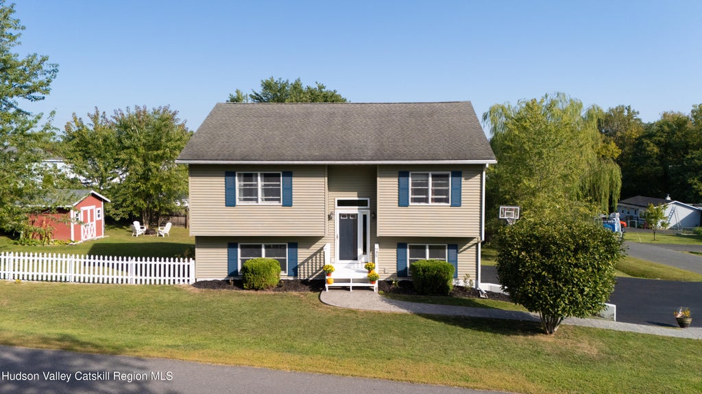 Tucked at the end of a quiet street, 35 Crown Court offers the best of neighborhood living — space to spread out, a finished lower level for work or play, and a large backyard that invites gatherings, gardens, and carefree afternoons under the sun. The split-level layout is designed for ease: open, light-filled spaces upstairs with 3 bedrooms a walk in closet and 2 full bathrooms, a new kitchen with indoor and outdoor dining and a flexible lower level that adapts to your needs — think playroom, guest space, or home office. The lower level offers a mixed use laundry/bath, one car garage and a mixed use room that walks out to the large backyard. Outside, the private yard becomes your own green oasis, framed by trees and ready for everything from summer barbecues to star-lit evenings by a fire pit. Plenty of room for a pool. Located in Stuyvesant, you're minutes from the vibrant Hudson scene while enjoying the calm of a family-friendly neighborhood. Minutes to the historic Kinderhook Village, Rail Trail and Amtrak station, 35 Crown Court is a home to grow into, relax in, and make your own.