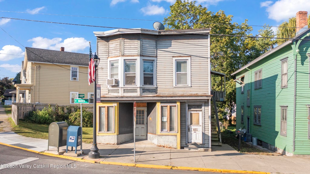 Located at the intersection of Warren Street and Worth Avenue, this mixed-use property offers unmatched visibility with unlimited potential in the heart of Hudson. The first floor has been fully gutted, presenting a blank canvas for your custom commercial or residential build-out. The upper level maintains original architectural character and offers additional opportunities for renovation, income generation, or owner occupancy. Whether you're envisioning a retail storefront, gallery, café, or modern live/work space, this property is ready for transformation. Set on a rare corner lot, the building benefits from dual street exposure and an abundance of natural light. A large yard adds even more value—perfect for outdoor seating, a garden, or additional development potential. Drawn and approved blueprints to be sent to perspective buyers via email. Construction company also available to do the proposed work which would add two parking spaces. Come with your vision and schedule your showing today!