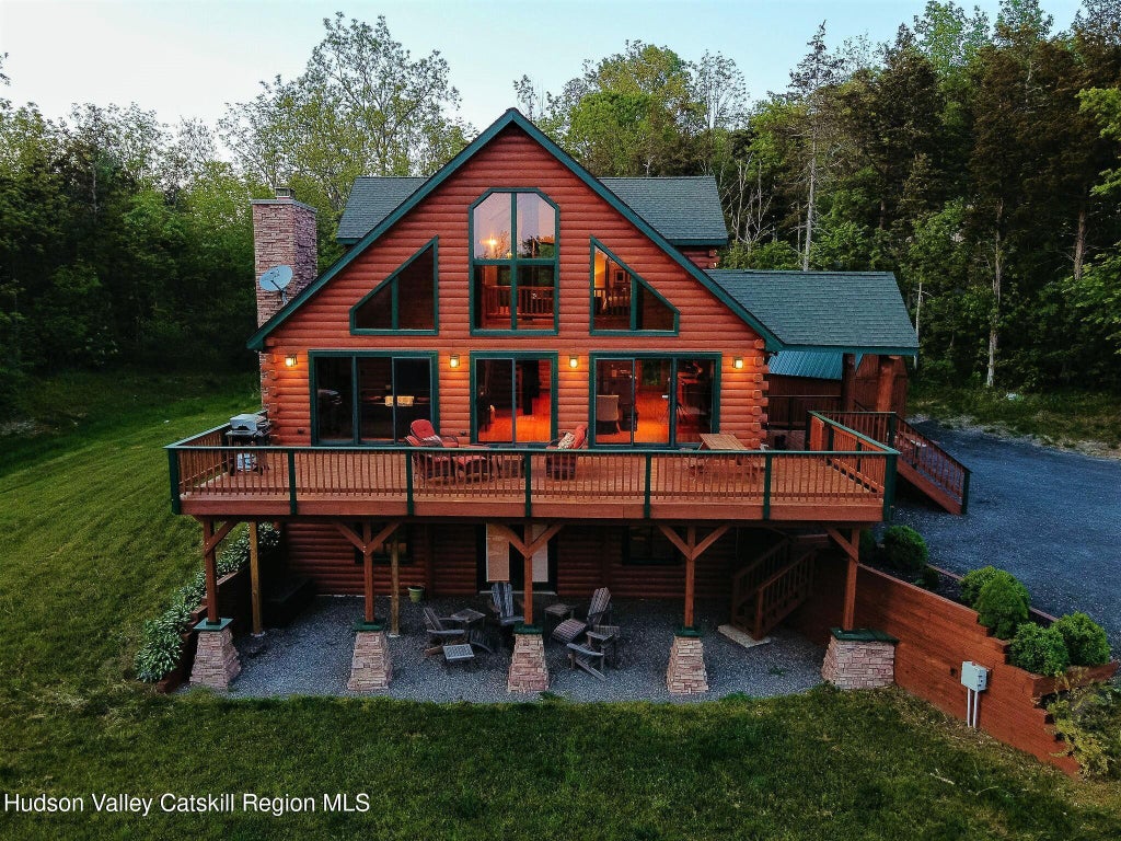 Mountain Retreat in Catskill - Proven Rental on 3.5 Acres with Pond Just two hours from New York City - and 10 minutes to Amtrak - this turnkey custom log home offers the best of both worlds: a serene country escape and a successful, income-generating rental. Set on a quiet road, the property is sun-filled, meticulously maintained, and designed for effortless entertaining with its wide-open floor plan, vaulted ceilings, and expansive deck that creates seamless indoor-outdoor living. At the heart of the home, the oversized kitchen island naturally draws people together, while the gorgeous stone fireplace in the living room creates a cozy focal point. The home has been exceptionally maintained and features high-quality appliances and finishes throughout, blending rustic charm with modern convenience. The home features four spacious bedrooms, each with its own full bath, a rare and highly desirable layout. The oversized primary suite upstairs feels like a true retreat, with a spa-like bathroom and a private deck where you can sip morning coffee or unwind under the stars. The finished walkout lower level extends the living space, perfect for a game room, movie room, or home gym. Step outside to 3.5 acres of Catskills beauty, complete with a pond that becomes a winter skating rink or could be transformed into a natural swimming pool. There's plenty of space for a fire pit on crisp Fall nights, and endless opportunities to enjoy the outdoors. Recent upgrades include: new kitchen butcher block countertop, modern sink, Zline hood range, LG refrigerator, electric range, Bosch dishwasher, microwave, washer and dryer, primary suite rainfall shower head and controller. Mechanicals have been updated with a new furnace and AC, boiler and hot water heater, upgraded water filtration, pond and well pump improvements, as well as exterior deck upgrades and security cameras. Adventure is right at your doorstep. Hunter and Windham ski resorts are only 25 minutes away, as are countless scenic hiking trails, and golf enthusiasts will love being adjacent to the Catskill Golf Resort. You're also just 5 minutes to great restaurants, shops, and more in downtown Catskill and a quick 10 mins to Hudson and Amtrak, which makes for super easy commuting or guests coming to visit.
