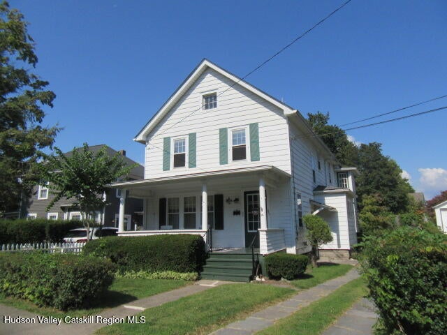Prime location, walkable to uptown Kingston, elementary school, and close to NYC bus route. Just walk to corner of Washington Ave and flag the Trailways bus! Multiple amenities located steps away to Stewart's shop, King's Pizza, Boulevard Liquors, bakery, Art gallery, and licensed dispensary. Solid older home, perfect set up for owner occupants to live in the downstairs 2BR unit and rent out the 1BR apartment and small studio upstairs. If you are an investor looking for income, this is the place for you with a little bit of polishing up, you will have a great property for your future. Downstairs unit is good to move in. Upstairs units need updating. There is a full walk-up attic and full basement. Four (4) car detached garages for tenants and owners to use. The driveway is owned by this property. The neighbor to the right has a deeded right of way to get to their garages and rear yard. Updates include a new roof on the house in 2022 and two car detached garage roof done in 2020. Heat and hot water system was converted from oil to natural gas with a tankless on demand hot water heating system installed in 2016. The oil tank was above ground located in the basement and removed when old furnace was replaced. Hurry to see this as it is priced to sell and you don't want to miss out on a great investment!