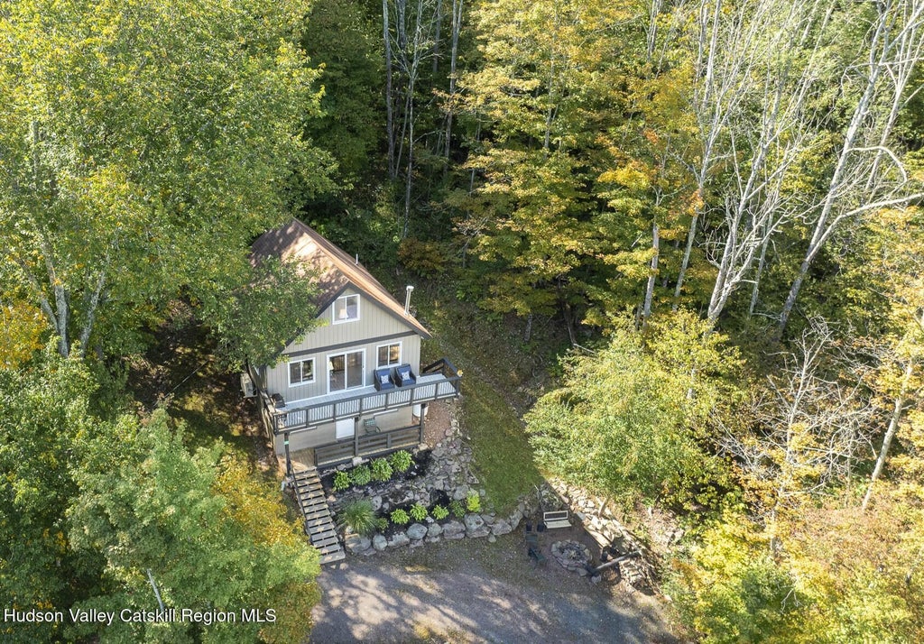 A Hunter Mountain Ski Chalet — one of the most functionally styled homes in the very desirable neighborhood of Colonel's Chair Estates at Hunter Mountain. The home boasts of four bedrooms, two full baths and one-half bath on three levels. The open floor plan, living/dining and kitchen, opens up to a deck with front-row lake and mountain views as well as a babbling brook that runs along the side of the property. The home, complete with laundry room, billiards/rec room and large outdoor firepit, is perfect for weekend get-aways or rental investment. Cozy up to the gas-style wood-stove in the winter or enjoy the long-distance and ever-changing mountain views throughout the four seasons. All of the indoor furniture will convey with the sale, so you'll be able to ''hit the slopes'' with the first dusting of snow. The home has been beautifully maintained over the years and was recently upgraded with a mini-split system — offering year-round comfort. Added peace of mind comes from having both public water and sewer. The Colonel's Chair Estates neighborhood, at the base of Hunter Mountain, is perfect for walking and ideally situated to enjoy all of the adventures of a mountain resort.