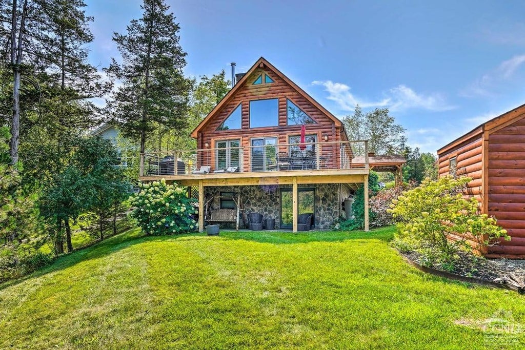 Discover the charm of true lakefront living in this inviting log home @ Sleepy Hollow Lake. The open concept main level features a cozy fireplace, filling the space with warmth + comfort. 2 bedrooms and full bath complete this level, while the upper floor is dedicated to a private primary suite with it's own bath. The lakeside walkout lower level offers a spacious family room, add'l bedroom and laundry all with direct access to the water. A perfect blend of rustic character and modern convenience, this home is made for relaxing lake life.