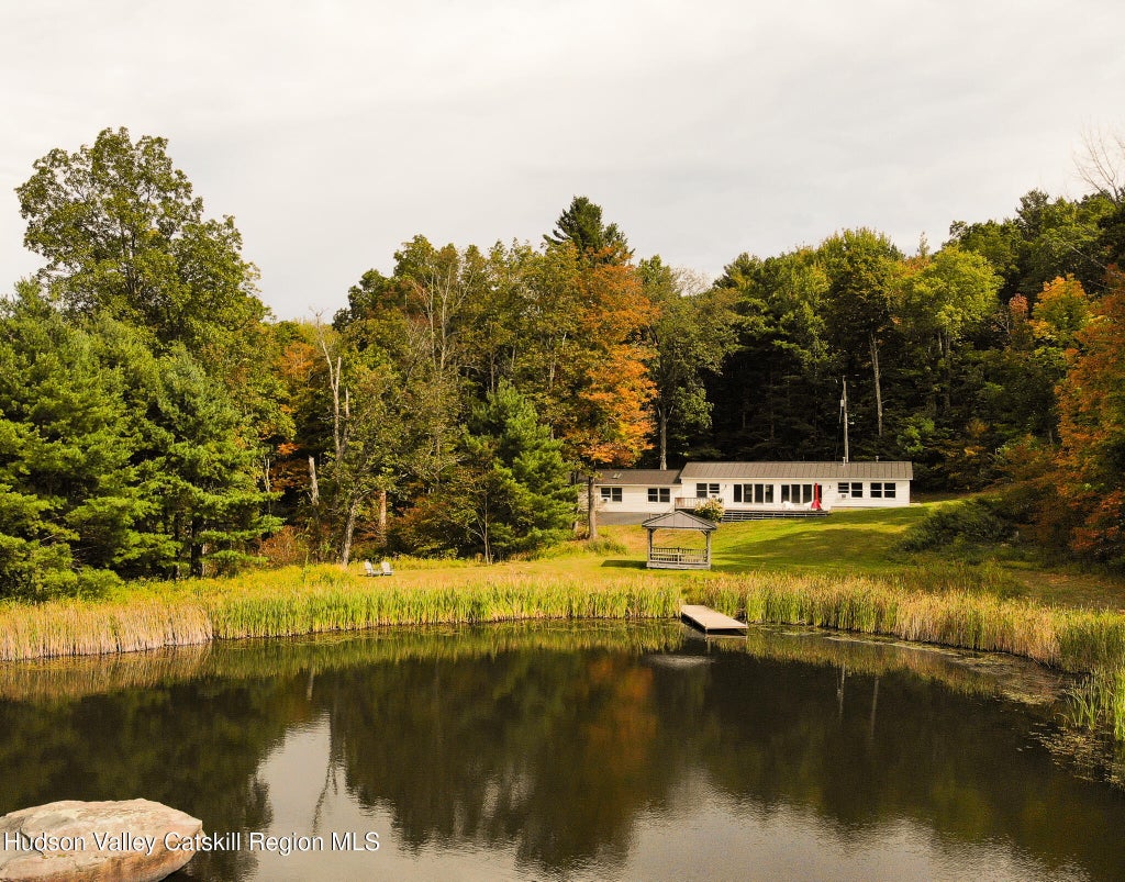 A House by the Pond. A thoughtfully rethought ranch in a private picturesque setting near the end of a dead end road. Delight in the wildlife as sunbeams dance across the pond. Windows act as picture frames for the view. An open and airy layout where all the living space flows. The kitchen anchors with enough space to create epic feasts. Four bedrooms with wonderfully tiled baths. The primary has a screened porch for morning coffee or a nightcap.