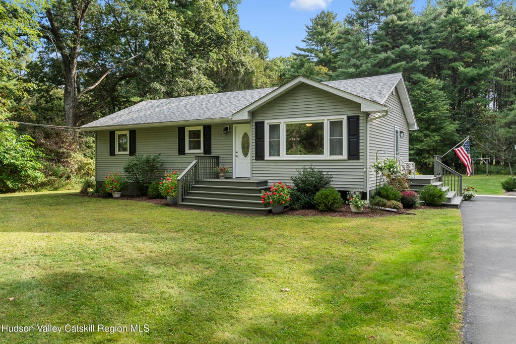 Nice location this is a must see! 1,040 square feet plus approximately 500 square feet of finished extra space in the lower level with electric fireplace. Move right into this impeccably maintained property. The thoughtfully designed layout flows beautifully throughout the main living areas, creating an atmosphere that's both welcoming and functional for daily life. The well-appointed kitchen serves as the heart of the home, perfect for preparing meals and gathering. The lower level features a cozy guest room with wine bar, an electric fireplace, a convenient half bathroom, and a practical laundry room. The extra space could serve a multitude of purposes including home office, guest room, den or home gym area. The location places you beautifully within reach of the Hudson Valley's finest attractions. Explore nearby Westwind Orchard and Arrowood Farms for fresh, local flavors, or treat yourself to the artisanal delights at Saunderskill Farms. When adventure calls, both Minnewaska State Park Preserve and Mohonk Preserve offer stunning natural escapes just a short drive away. The sophisticated INNESS resort adds a touch of luxury to your neighborhood options. This property is move-in ready with many recent improvements. Furnishings are available which would make this home truly turnkey.