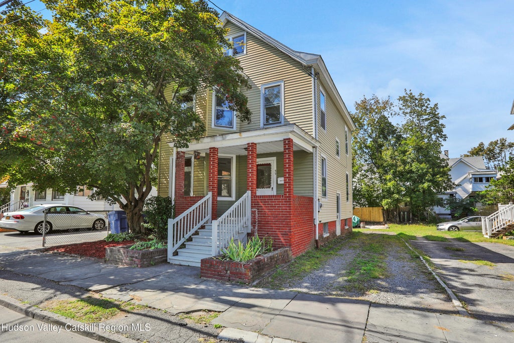 Charming Turn-of-the-Century Gem in the Heart of Historic Kingston! Welcome to 59 W. O'Reilly Street — a beautifully maintained, character-rich home owned by the same family for over 50 years. This spacious turn-of-the-century residence features original woodwork, solid oak doors, period wood windows with storms, stained glass accents, and ornate Victorian-style pop-out windows. These timeless touches blend seamlessly with updates, including fresh paint, new carpeting throughout, high ceilings, and an abundance of natural light. The first floor offers a sun-filled living room that opens to a convenient primary suite with a full bath. The home includes large bedrooms across the upper floors with new carpet and paint, ample closets, two kitchen pantries, and a walk-up attic ready to finish. A newly built rear porch opens to a functional backyard with off-street parking — a rare find in this neighborhood! Enjoy modern comfort with a natural gas furnace, central A/C, upgraded 200-amp electric, and excellent insulation for year-round efficiency. The fully dry basement (with exterior side access) offers laundry, workshop potential, and even has a lined chimney for a future wood stove. Enjoy a newly built porch, off-street parking for two, and a private backyard ideal for gardening, play, or gatherings. Recent updates include a fully lined chimney, a hot water heater (4 years old), and a roof replacement (2010, down to studs/new plywood). Perfectly located on a hospital/emergency route (priority for snow removal and utilities), this home is minutes from uptown shops, downtown waterfront, festivals, restaurants, and parks. Easy access to Woodstock, Phoenicia, and the Catskills for weekend getaways. Note: You can keep backyard hens (yes, it's legal here)! This location has 5k in grant money available! See attached flyer. Own a piece of Kingston's history, lovingly preserved and move-in ready. ** Please see associated docs for deed, county records and owners house comments**