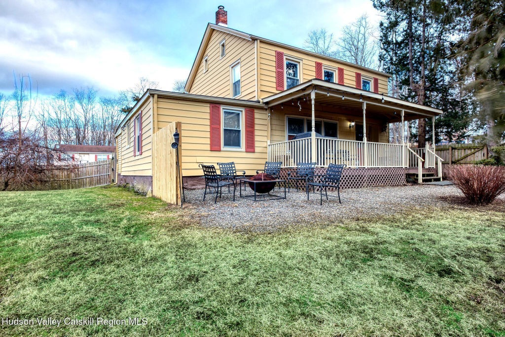 The Porch House on the Rondout - A 1901 Kingston Classic with Modern Soul If you've been dreaming of a Hudson Valley escape that blends architectural soul with everyday ease, this is it. Tucked on a tree-lined street just blocks from Kingston's vibrant Rondout waterfront, this stunning 1901-built home offers the rare combination of preserved character and upscale modern updates—move-in ready, yet rich with story. Inside, you'll find gracefully restored hardwood floors, tall ceilings, and beautifully proportioned rooms—including a spacious first-floor bedroom perfect for guests, a home office, or flexible one-level living. The light-filled upstairs primary suite offers privacy and comfort with its own ensuite bath. The kitchen is a true standout: quartz countertops, a drawer microwave tucked into the island, and a commercial-grade gas range elevate both style and function. The open-concept layout flows beautifully into the living and dining areas—ideal for entertaining or cozy nights at home. A first-floor laundry room adds convenience and efficiency, while a new boiler provides peace of mind. Outside, the charm continues. The original clapboard siding, wide front porch, and level 0.29-acre lot give you the outdoor lifestyle buyers crave. A detached two-car garage provides storage, studio space, or workshop potential. All this just a few blocks from Kingston's historic Rondout District—offering waterfront dining, art galleries, local boutiques, coffee shops, the Kingston Greenline, and the creek itself. Whether you're full-timing in the Hudson Valley or seeking a refined weekend retreat, this is a rare opportunity to own a timeless Kingston home with all the modern luxuries already in place.