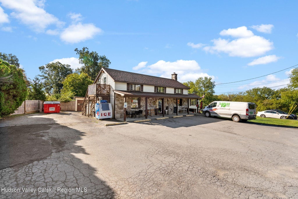 Here's your chance to own a thriving deli and convenience store that locals know and love, along with the building and an income-producing apartment — all in one unbeatable package! Perfectly positioned on heavily traveled Burlingham Road, less than one mile to Route 52 and under 10 minutes to the Hamlet of Pine Bush, this property offers excellent exposure and nonstop traffic. The building makes a statement with its covered porch, and clear roadside signage, while the inside is set up for success. The deli features a spacious customer area with multiple dining tables for eat-in service, a full line of glass-door coolers, display cases, and food prep stations, and ample shelving for grocery and convenience items. Behind the scenes, the property is equipped with a fully functional kitchen, complete with stainless steel prep tables, a gas range with overhead hood, deep stainless sinks, double refrigerators, and extensive shelving and storage for dry goods and supplies. This area is designed to handle daily food prep with ease, making it ideal for deli operations or expansion into catering and events. A walk-in cooler, freezers, and additional storage provide even more support, and there is also a dedicated office space for management, as well as a bathroom conveniently located off the storage area. Additionally featuring a whole building generator powered by propane, great for those unexpected power outages. Generator feeds the deli and upstairs apartment without any stress. Above the business, the one-bedroom apartment offers its own private exterior entrance and deck, along with hardwood floors and a kitchen/dining area combo, providing comfortable living quarters and steady rental income with room to increase. The property spans 1.8 acres, including a large paved lot with parking for 25+ vehicles, an open field, picnic/entertaining area perfect for events, and a separate one-car garage for storage. With its warm, welcoming atmosphere, proven community reputation, and multiple income streams, this is a turn-key investment package with endless potential for an owner-operator or investor ready to grow, expand, or simply enjoy the returns.