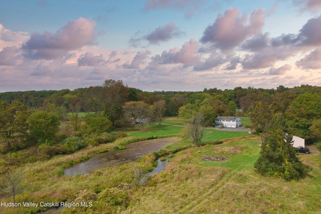 Exceptional 11-acre estate on one of Stone Ridge's most sought-after country roads. This bucolic property features a tranquil pond, lush meadows, and mature trees, offering privacy and scenic views on a picturesque, tree-lined street. Just 5 minutes from Stone Ridge's shops, restaurants, and services, it combines peaceful countryside living with convenient access to amenities. The property includes twin parcels offering multiple possibilities, including construction of one or more additional houses. The existing main home sits on 9 sub-dividable acres and includes an ADU with independent septic, well and utilities. A separate 2-acre parcel is also included. The main residence offers wonderful potential with three bedrooms, gleaming hardwood floors, and a second kitchen downstairs that's ideal for a family room or an in-law or guest suite. A screened porch showcases the stunning pond and countryside views, perfect for relaxing or entertaining, with seasonal vistas of Mohonk. Adding significant value, the income-producing ADU features a well-maintained 2-bedroom, 1-bathroom manufactured home. This provides excellent opportunities for rental income, extended family housing, or future development. Additional amenities include an attached 1-car garage, detached 2-car garage, and generous barn structure, while the expansive grounds invite gardening or recreational pursuits. Located in charming Stone Ridge, renowned for rolling farmland and historic stone houses, this property sits just 90 minutes from NYC with easy access to the Catskills, Hudson Valley, and major routes. It's a rare opportunity to enjoy natural beauty, income potential, and the serene Hudson Valley lifestyle.