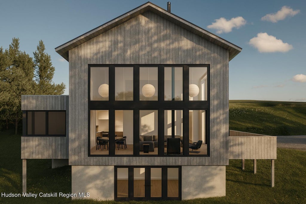 Set on a serene two-acre parcel that spans both sides of a quiet country road, this exceptional new residence, scheduled for completion in December 2025, offers a rare blend of modern architectural polish and timeless natural beauty. A gentle creek meanders through the landscape, creating a soothing backdrop to a home with warm materials, refined craftsmanship, and high-performance building standards. The primary residence encompasses 2,040 square feet of conditioned space, with two bedrooms both featuring an ensuite bath. The interior palette is understated yet luxurious: Belgian bluestone and wide-plank Mirage engineered oak flooring set a grounded tone, while custom white oak cabinetry and integrated Miele appliances lend a seamless elegance to the kitchen. Ceppo Di Gre stone slab countertops add richness and texture, complementing the home's natural material ethos. Every detail speaks to quality and intentionality. The exterior is clad in cedar siding and stucco rain-screen over a Zip System sheathing, topped by a standing seam metal roof. The home is constructed to meet high-performance standards with an R35.5 wall assembly and an R60 roof, ensuring exceptional thermal comfort year-round. A whisper-quiet ground-source heat pump from Dandelion provides heating and cooling to the central forced air system. An original 1956 Montgomery Ward structure has been carefully reimagined as a conditioned accessory structure with a half bath. It offers 420 square feet of flexible space - ideal for a studio, guest quarters, or remote work. The home includes an oversized one-car garage with 390 square feet of additional space. Outdoor living is enhanced by a 125-square-foot screened-in cedar patio overlooking a creek, which invites quiet mornings and evenings immersed in the surrounding natural beauty. Premium fixtures and finishes throughout the home: Kohler plumbing, Toto toilets, an Electrolux washer/dryer, and a Zephyr exhaust hood round out a best-in-class appliance suite. At the heart of the double-height living space, a Stûv wood-burning stove adds warmth and sculptural elegance. While it feels worlds away, the property is ideally situated for connection to the region. High Falls is just three minutes away, with the charming hamlets of Stone Ridge and Rosendale reachable in under eight. New Paltz lies 12 minutes to the south, Kingston is a 20-minute drive, and Minnewaska State Park Preserve, with its celebrated trails and vistas, is just 15 minutes away. With construction well underway and completion anticipated in December 2025, there is still an opportunity to personalize select finishes. This is more than a home - it is a cohesive retreat where sustainability meets sophistication in the heart of the Hudson Valley.
