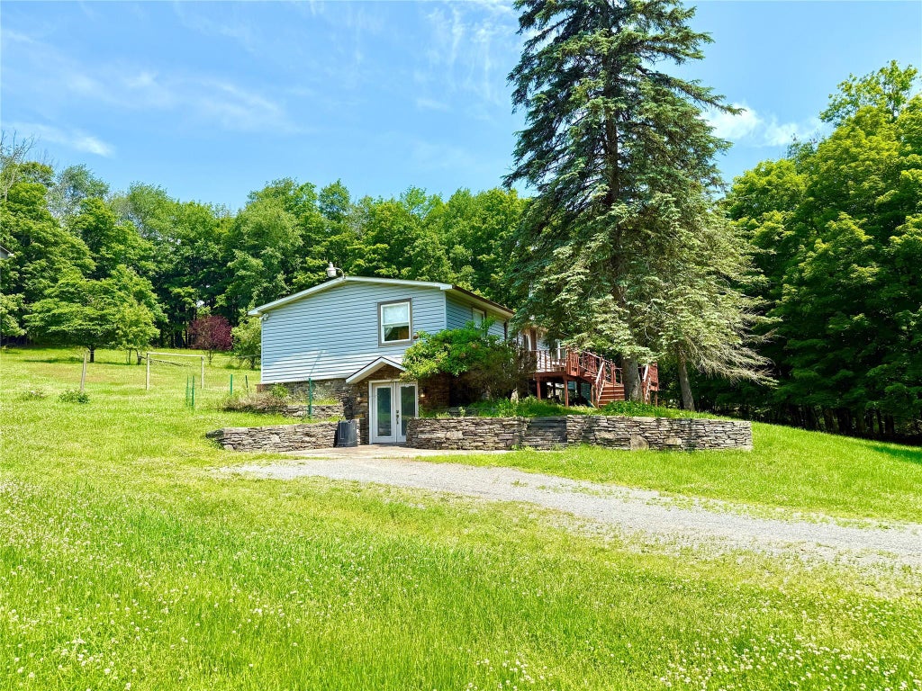 We are excited to present this exceptional property, featuring a spacious home and a meticulously crafted, overbuilt two-story garage that offers endless possibilities—easily adaptable into a charming guest house. The garage boasts a well-equipped gym on the second floor, with the ground level currently utilized as spacious storage. Situated on over three acres of private land, this property is enveloped by impressive stone walls, showcasing remarkable stonework that creates a striking entrance to the home. The residence itself exudes warmth and character, with beautiful hardwood floors throughout. It offers four spacious bedrooms, two full bathrooms, and a finished basement that includes a convenient laundry room. There is truly no shortage of space and functionality. Enjoy the expansive grounds while being just a short drive from the iconic Bethel Woods Center for the Arts, as well as the charming hamlets of Jeffersonville, Callicoon, and Narrowsburg—each offering their own unique appeal and local attractions. This is a rare opportunity to own a home that blends privacy, craftsmanship, and proximity to the best of the region.