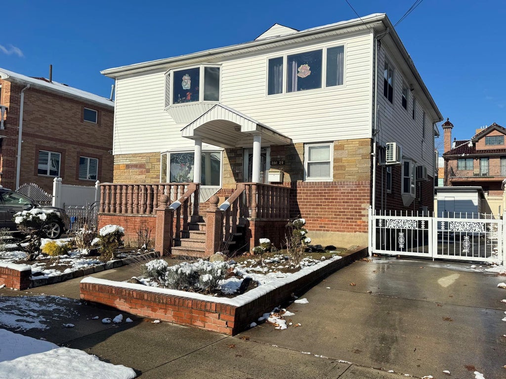 This beautifully maintained two-family property is located in an R3X zoning district and offers a fantastic opportunity for both homeowners and investors. The property sits on a spacious 50x100 lot, with a well-proportioned building size of 31.3x40. The first floor features 3 bedrooms, 1 bathroom, a large living room, an eat-in kitchen, and access to the backyard. The second floor boasts a large living room, kitchen, and dining area, along with a master bedroom with an en-suite bathroom, 2 additional bedrooms, and another full bathroom. The ceilings throughout are at least 10 feet high, offering a feeling of openness and space. The finished basement has a separate entrance, providing additional living space or rental potential. and 2 driveways ( 4 parking spaces) Conveniently located, this home is just steps away from shops, restaurants, parks, and schools. Public transportation options are readily available, with the Q12, Q13, and Q76 buses nearby. This property combines excellent condition, versatility, and ample living space, making it an ideal home for multi-generational living or a smart investment. With its attractive price, don't miss the opportunity to own this rare gem!