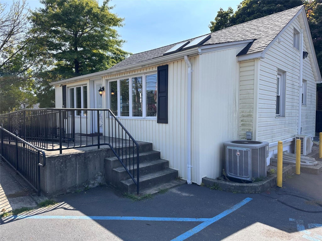 Prime location with excellent traffic visibility! Permit for MULTIPLE USE/MULTIPURPOSE-480. This building features a reception area, three rooms, two half baths, a kitchen, central air conditioning, and a gated private parking lot. Zoned E for business use, it was previously a heating and cooling office. The space is exceptionally clean and move-in ready, with an alarm system available. Total space is 1,218 sqft