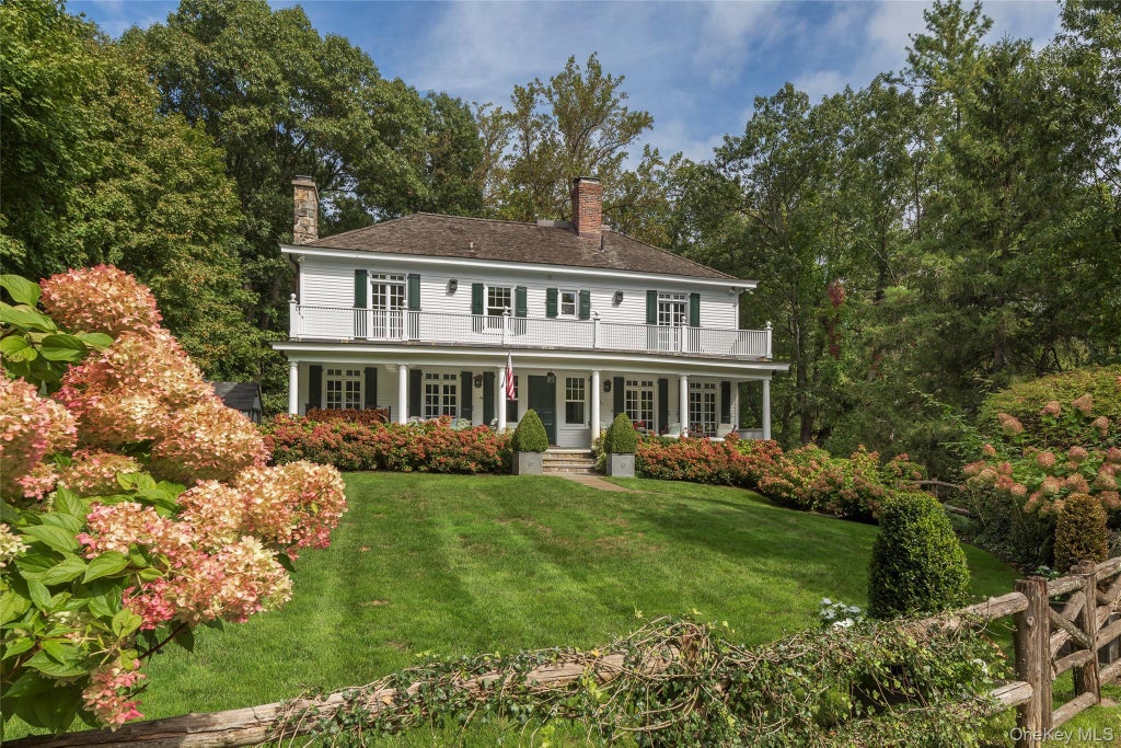 Stylishly reimagined by two New York fashion VIPs, this sophisticated 1905 Colonial blends modern luxury with the home’s original integrity, grandeur and charm. Tucked away on Hardscrabble Road, the serene sanctuary---a highlight of the New Castle Historical Society house tour—offers a Martha Baker-designed landscape, close to an acre, comprising woodlands, curated boxwoods, flowering dogwoods and a rose-trimmed garden fence. A rustic pergola leads to a freeform Gunite pool, while an original stone chapel—now a meditation space or poolside cabana-- has been rebuilt with a new cedar roof. The updated 4-bedroom home features custom millwork, wainscoting, and three wood-burning fireplaces. Interiors by Foley & Cox and designer Libby Cameron, offer refined comfort and timeless elegance. The kitchen centers around a hand-mitered Carrara marble island, with top-tier appliances and bespoke fittings. Radiant-heated, hand-hewn walnut floors extend through the kitchen, family room and first-floor ensuite bedroom. Upstairs, the primary suite includes a carved fireplace mantel, custom closets and French doors to a private balcony. A skylit, mid-century-inspired third floor serves as a spacious luxe home office. Two lower level walk out areas offer a large additional sun filled family room with built-ins, full bath, multiple rooms for flexible use including tv/den with full bath that encompasses 2305 additional square feet. Located in the coveted Chappaqua school district, it’s minutes to the Saw Mill Parkway and Chappaqua Metro-North.