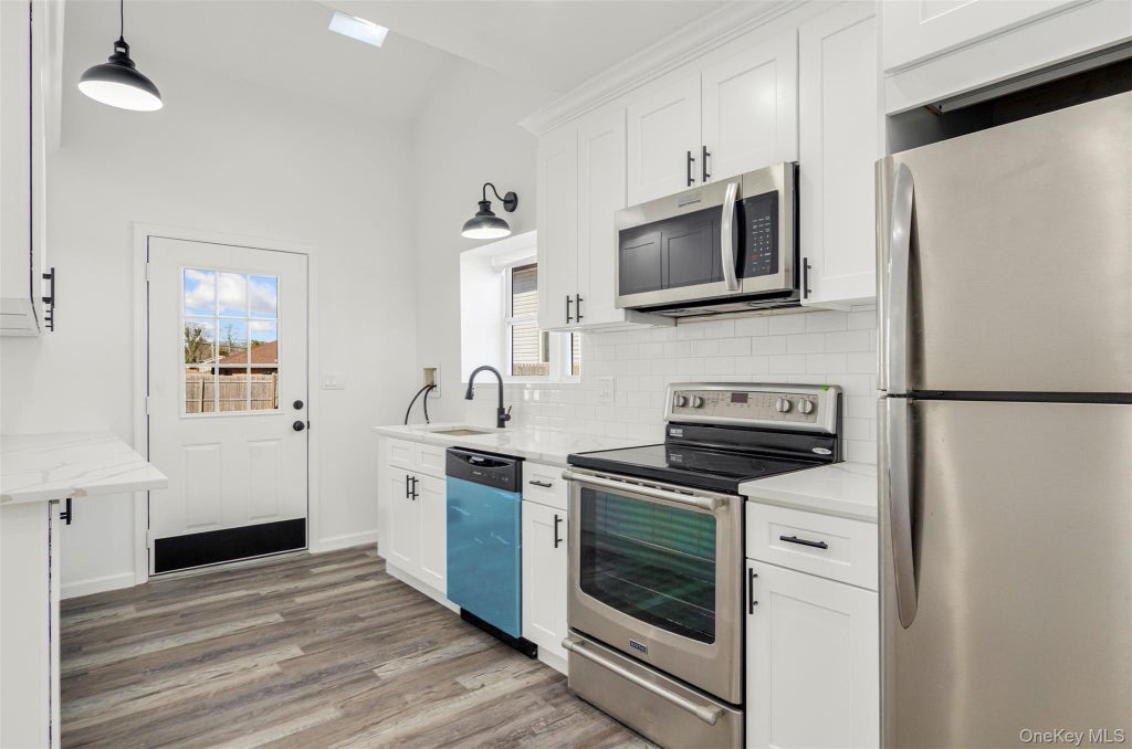 Charming & Bright 2-Bedroom Home with Modern Upgrades Step into this beautifully renovated 2-bedroom, 1-bathroom home, where natural light and modern comforts blend seamlessly. The inviting living room flows effortlessly into the updated kitchen, complete with a ductless AC/heating unit for year-round comfort. The first-floor bedroom offers flexibility as a home office, featuring a deep walk-in closet for extra storage. The stunning kitchen renovation showcases quartz countertops, stainless steel appliances, soft-close cabinets, and abundant storage space. Sunlight pours in through two skylights, an oversized window, and a back door, creating a bright and airy atmosphere. The renovated bathroom boasts a skylight, new fixtures, a tub, and a shower, offering a spa-like retreat. Upstairs, a spacious bedroom with two closets and ample natural light provides endless possibilities. This home is full of charm and modern updates, making it a perfect place to settle in and make your own!