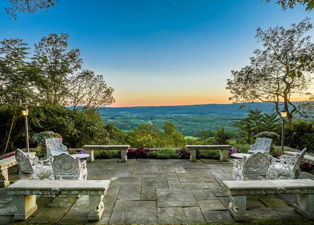 Perched at the very top of Westerly Ridge in Amenia, and surrounded by forever protected land under DLC conservation easement, lies the most exceptional building opportunity. There are panoramic 270-degree views, far and wide down the Oblong Valley to the south, across the Amenia hills to the west, and up into Sharon to the east, offering distant and varied views of the surrounding beauty. Ready for immediate development, the 27-acre parcel has an approved building envelope, beautifully landscaped driveway, new well and complete irrigation system, and buried telephone, internet, and electricity which currently powers the property’s extensive landscape lighting. As a bonus, there is a beautiful garden terrace that evokes the feeling of Tuscany.
