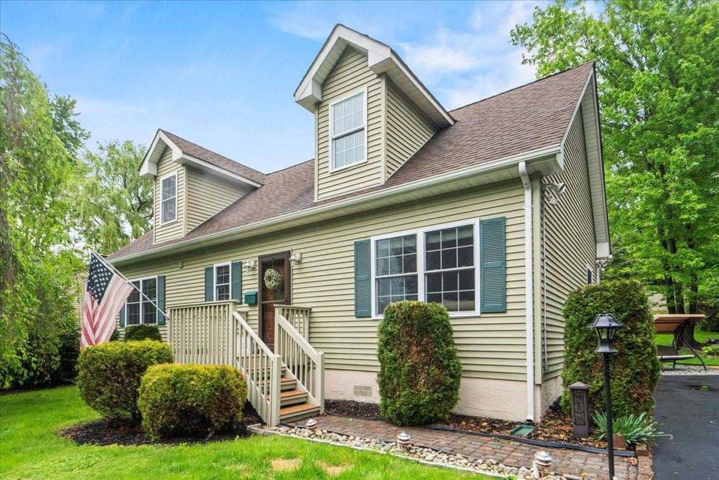 This pristine contemporary Cape Cod home in Greenwood Lake offers the perfect blend of style, comfort, and location. Inside, you'll find an open-concept living space with soaring vaulted ceilings, gleaming hardwood floors, and a cozy pellet stove that adds warmth and charm. The spacious kitchen features granite countertops, ample cabinetry, and an inviting eat-in dining area. Set on a private lot, the home also includes a beautifully landscaped backyard oasis with a private deck, patio, firepit, and two storage sheds—ideal for outdoor relaxation and entertaining. The property comes with an additional quarter-acre wooded lot zoned for single-family residential use, offering room to grow or expand. Enjoy lake access and sunset views just around the corner at Forest Park, or take a short walk to the popular Castle Cove Restaurant and Marina. Whether you're swimming, fishing, hiking, or skiing, Greenwood Lake offers year-round recreation. Additional highlights include a detached 2-car garage.