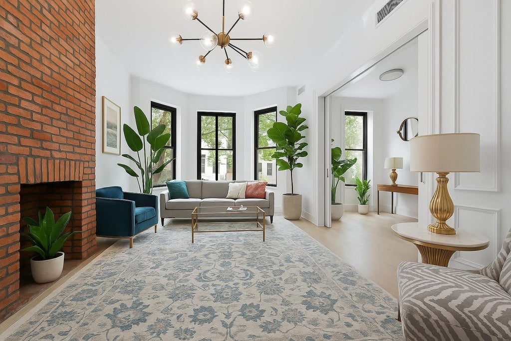 Meticulously reimagined in 2019, 68 Grove is a rare, freestanding prewar condominium conversion in the heart of Bushwick. Designed by Spearhead Design and Architecture, this boutique building offers six expansive residences, each with private outdoor space and storage. Residence 2L is a 1,210 SF three-bedroom, two-bathroom home with exclusive roof rights. The residence features soaring ceilings, oversized windows with three exposures, exposed brick fireplaces, and restored original moldings. The primary suite offers generous closets and a marble en-suite bath with dual vanities. The flexible Great Room features pocket doors for optional guest room or office separation. A chef’s kitchen with quartz countertops and appliances by Bosch and Fisher Paykel anchors the living space. The secondary bath boasts terrazzo floors and a deep soaking tub. Additional features include central A/C, vented washer/dryer, white oak floors, and a private storage unit. Conveniently located near the Gates Ave J train and Bushwick’s top amenities.