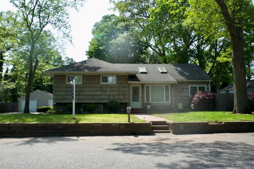 Charming Split-Level Ranch on 0.27-acre lot featuring 3 bedrooms and 2 full baths. The property offers a paver-lined driveway, oversized detached garage, large backyard, and spacious deck perfect for outdoor enjoyment. The main level offers an open-concept layout with cathedral ceilings, skylights, bay window, hardwood floors, and an oversized sunroom/living room that fills the space with natural light. Upstairs includes two large bedrooms and a full bath. The attic has new pull-down stairs and flooring, providing excellent storage. The lower level features its own private entrance, extra-high ceilings, a third bedroom, and a second full bathroom ideal for guests, extended family, or home office use. Conveniently located just minutes from vibrant downtown Patchogue, with easy access to shopping, dining, entertainment, and just minutes from Sunrise Highway for convenient commuting. You Don't want to miss this opportunity.